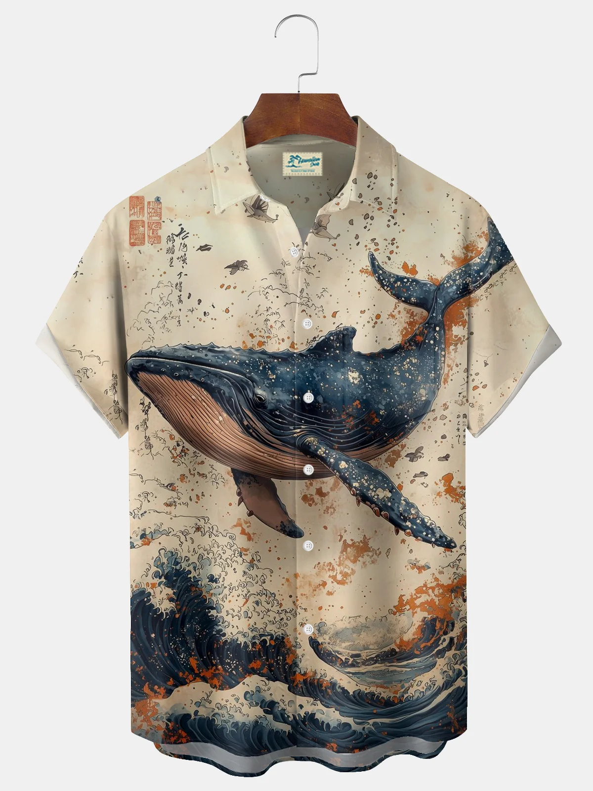 Royaura® Hawaiian Retro Japanese Ukiyo-e Print Men's Button-Down Short-Sleeve Shirt Big & Tall