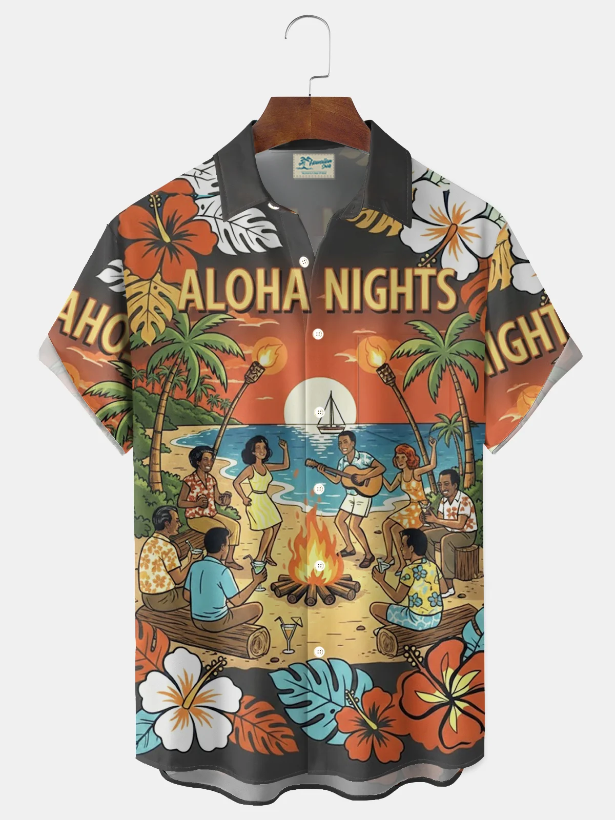 Royaura® Hawaiian Vacation Floral Print Men's Button-Down Short-Sleeve Shirt Big & Tall