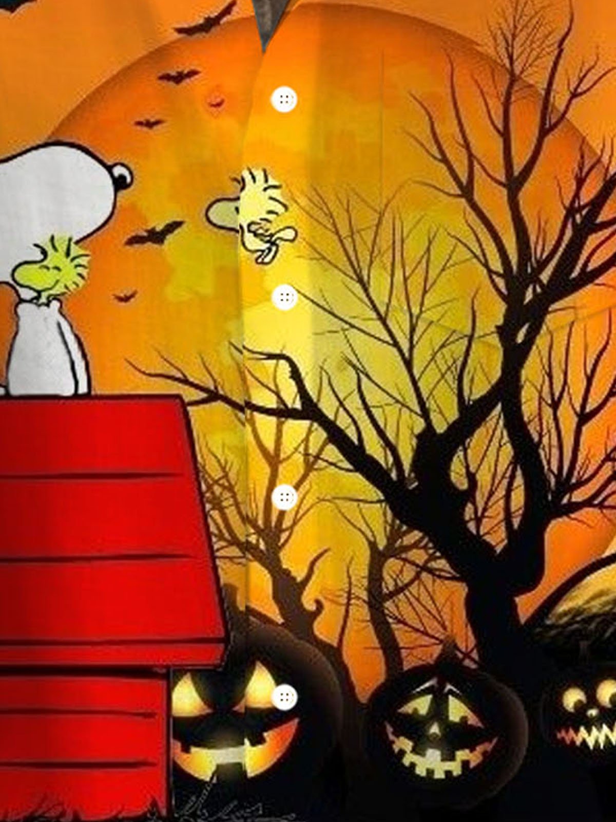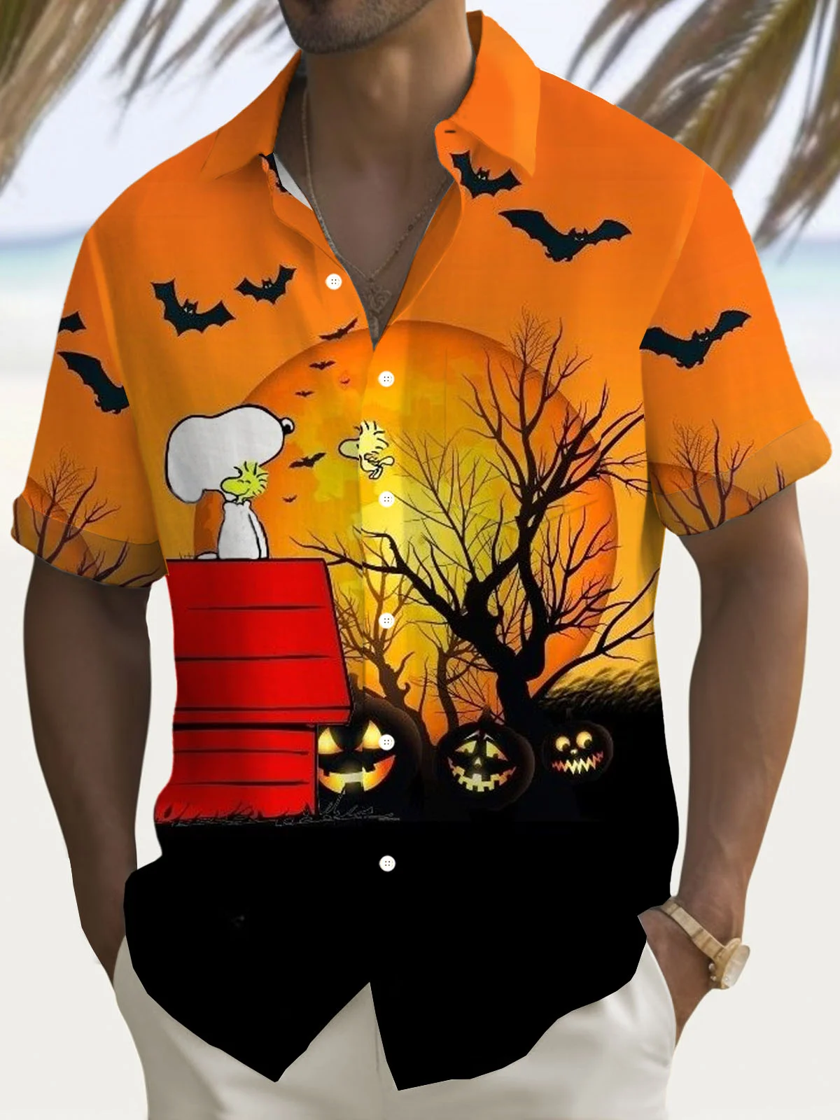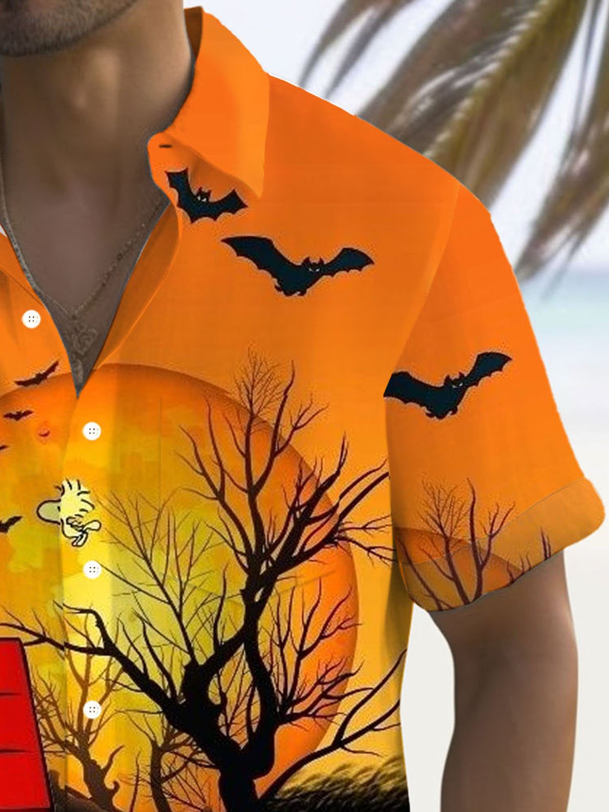 Royaura® Holiday Halloween Pumpkin Cartoon 3D Digital Print Men's Button Pocket Short Sleeve Shirt Big & Tall