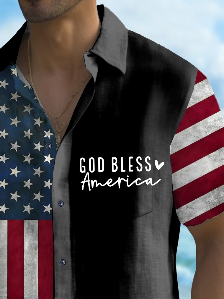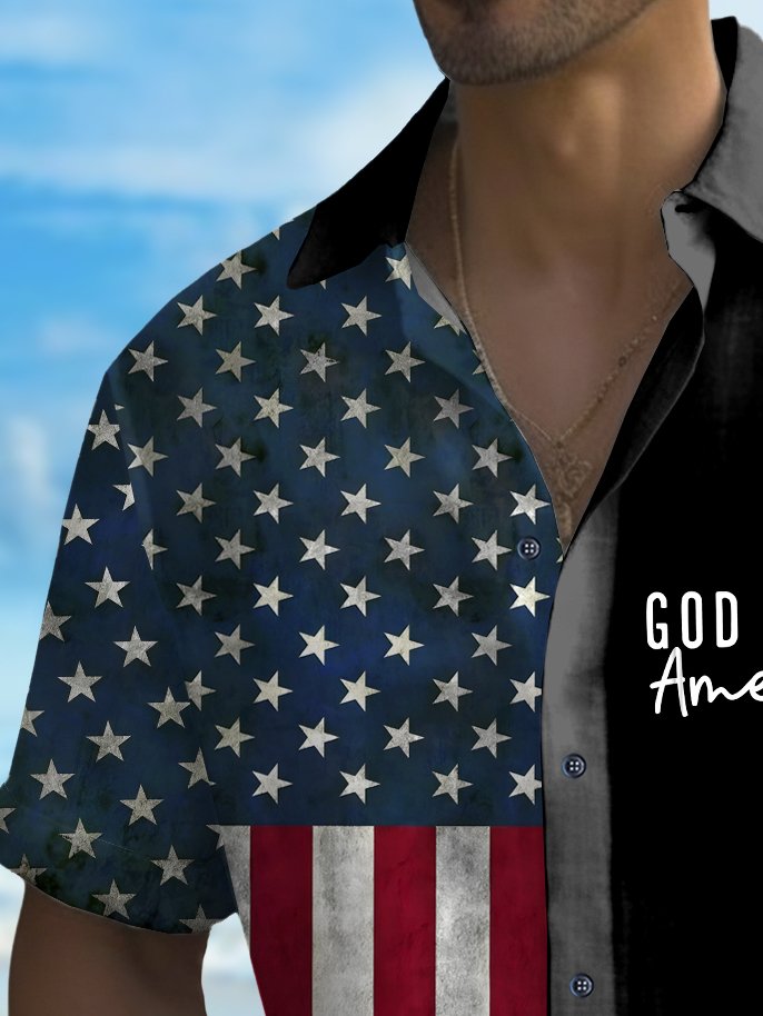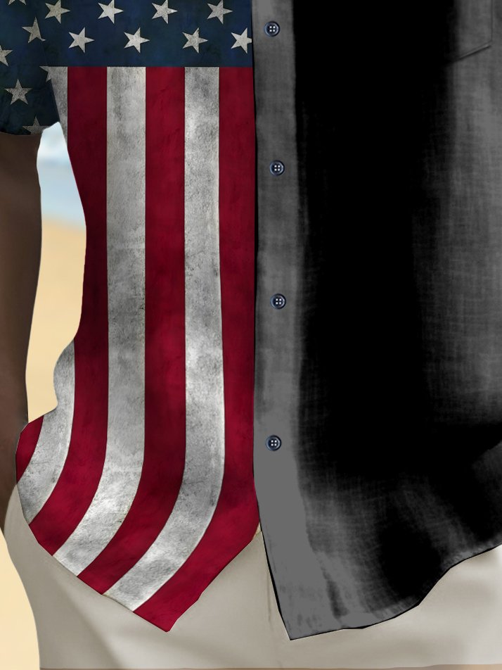Royaura® Holiday Men's Independence Day American Flag Print Casual Breathable Short Sleeve Shirt Big Tall
