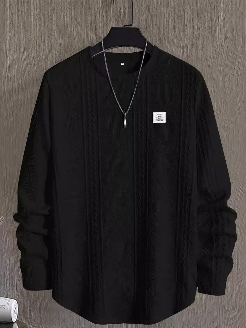 Royaura® Jacquard Men's Crew Neck Long-Sleeve Sweatshirt with Label Big & Tall