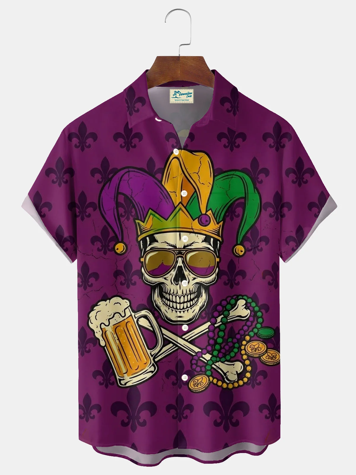 Royaura® Mardi Gras Skull Print Men's Button-Down Short-Sleeve Shirt Big & Tall