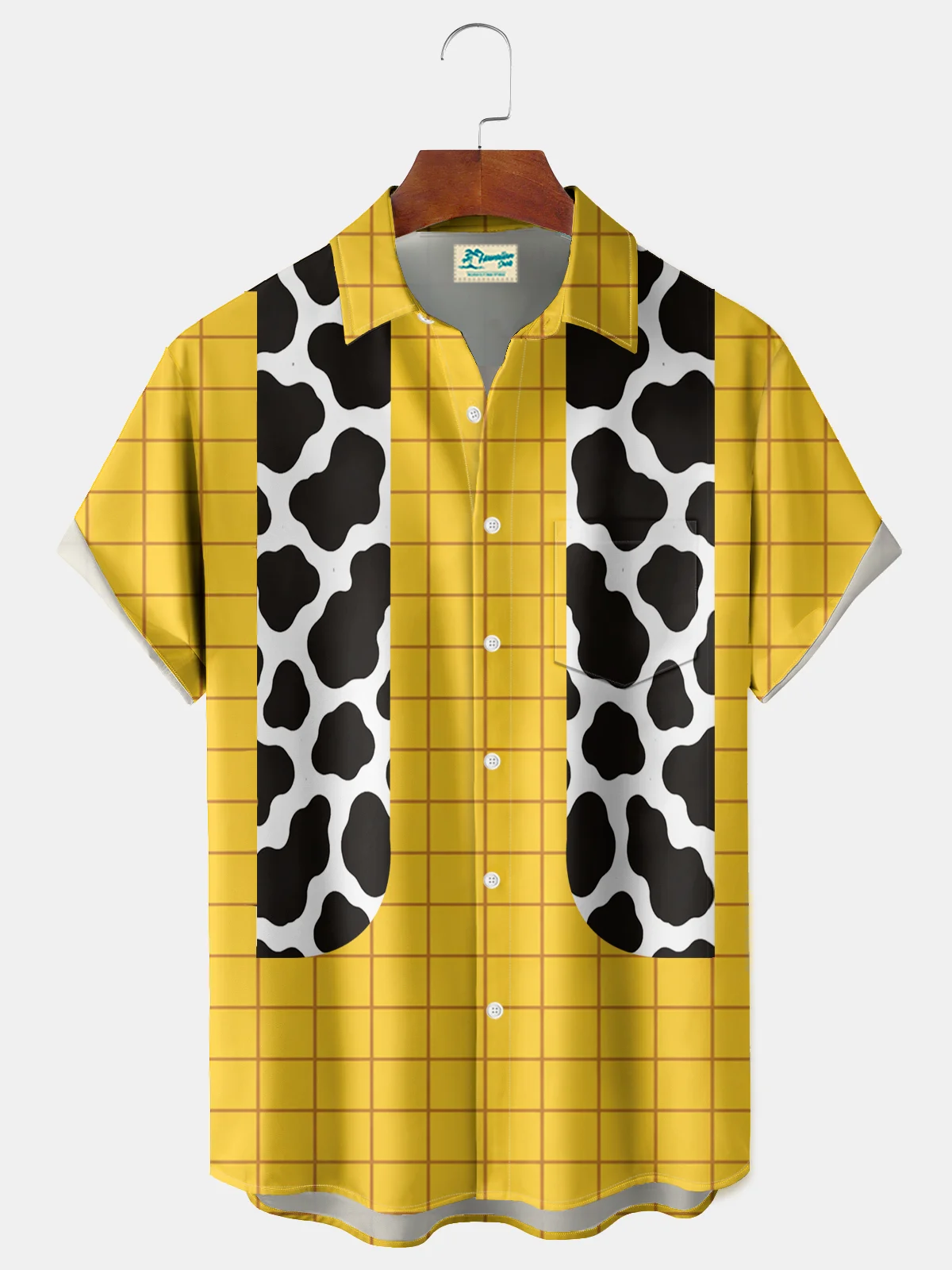 Royaura® Men's Basic Geometric Art Grid Cow Color Matching Print Retro Short Sleeve Shirt Big & Tall