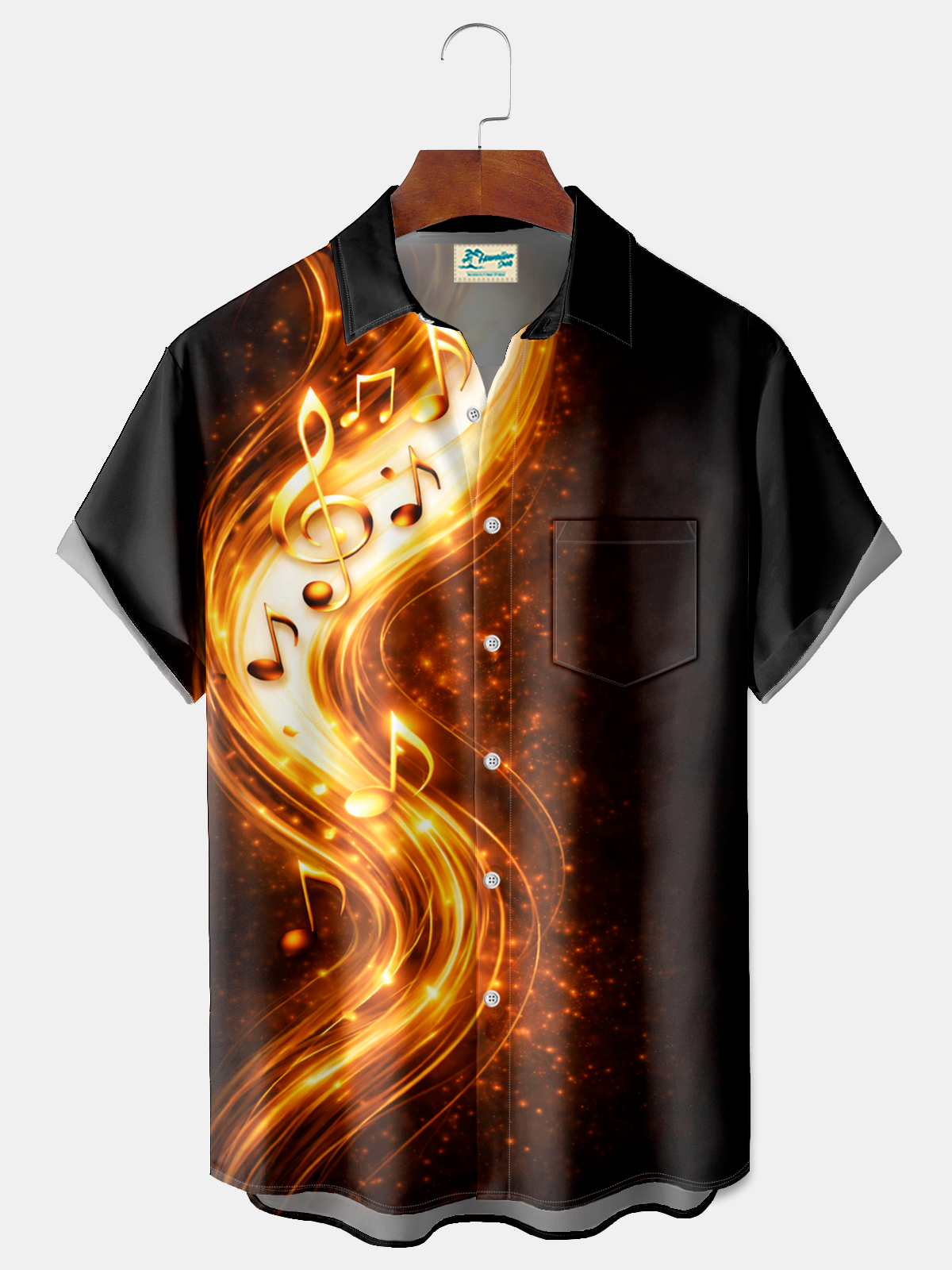 Royaura® Men's Basic Gradient Note Golden Abstract Art Print Retro Short Sleeve Shirt Big & Tall