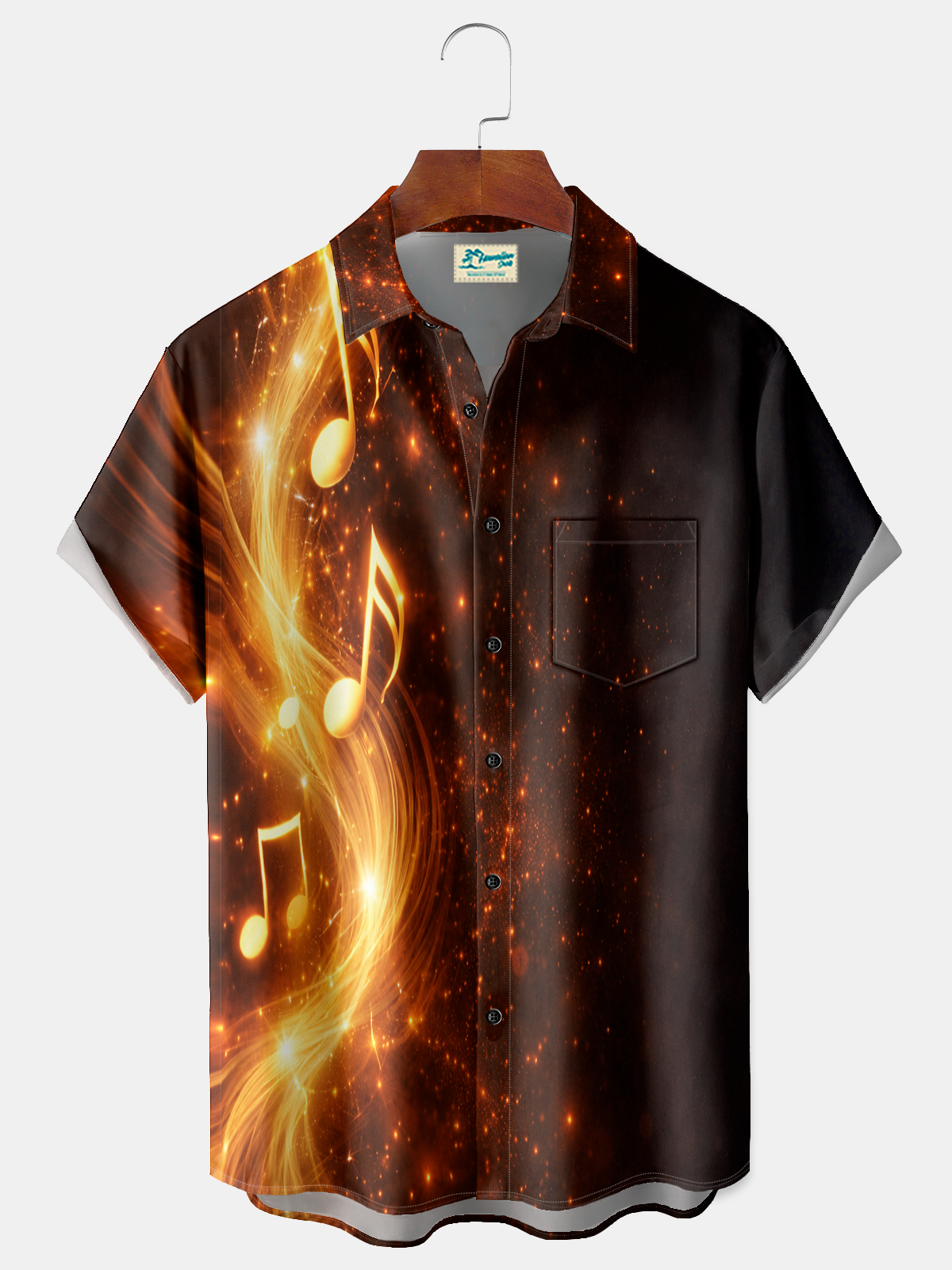 Royaura® Men's Basic Gradient Note Golden Abstract Art Print Retro Short Sleeve Shirt Big & Tall