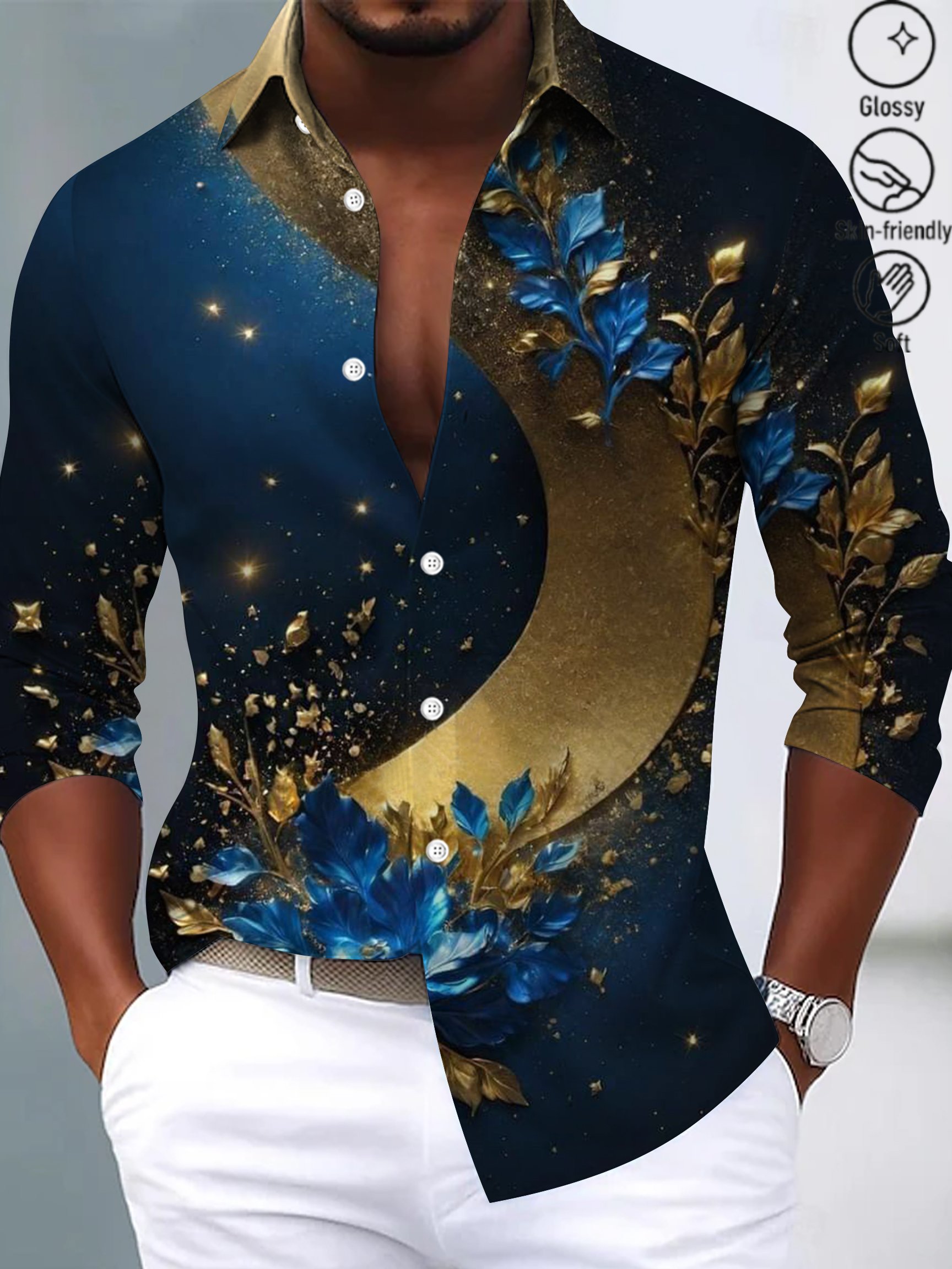 Royaura® Men's Gradient Stripe Print Button-Down Satin Long Sleeve Shirt Big & Tall
