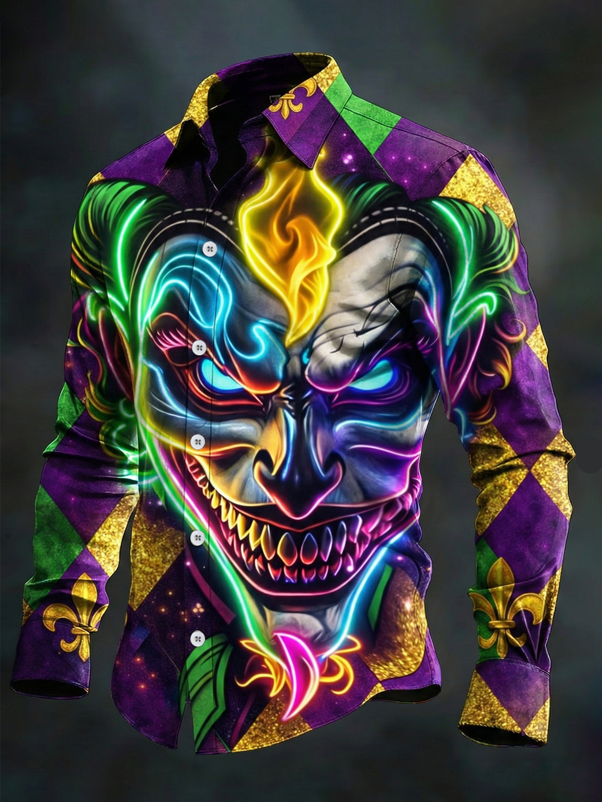 Royaura® Men's Holiday Carnival Mardi Gras Geometric Art Flame Clown Button-Down Print Retro Long-Sleeve Shirt Big & Tall