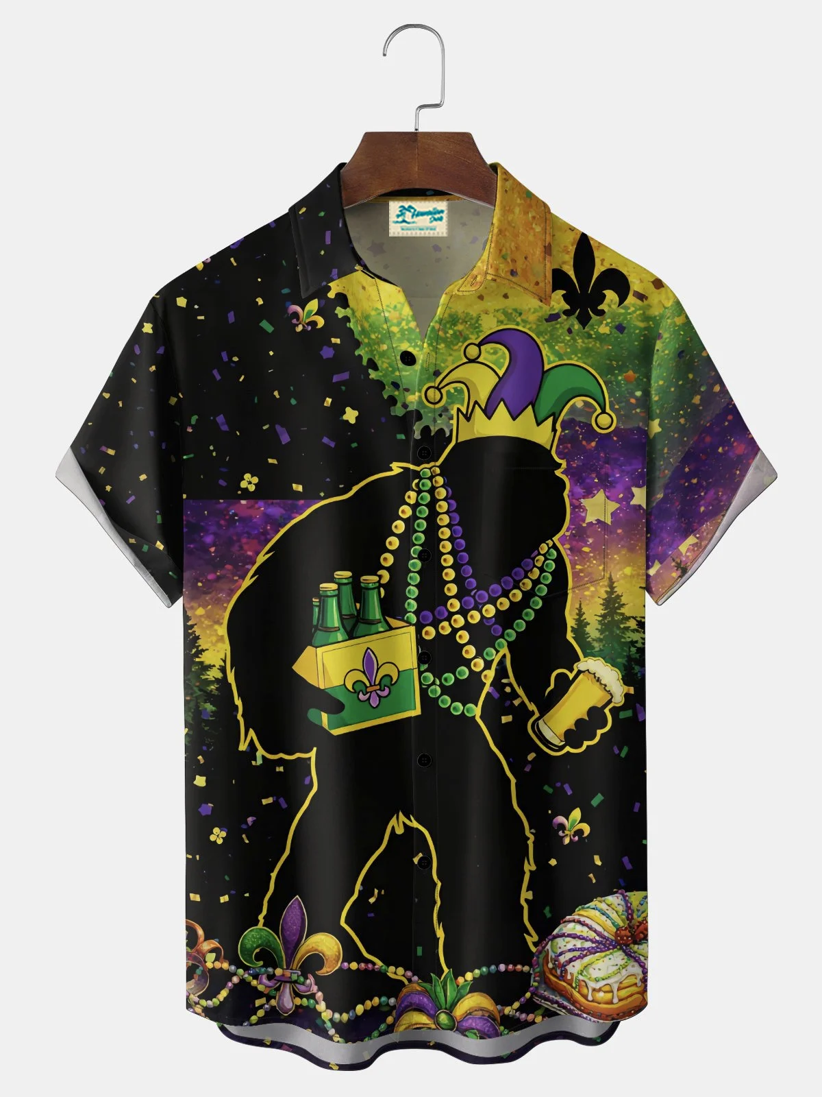 Royaura® Men's Holiday Mardi Gras Bigfoot Print Button-Down Short-Sleeve Shirt Big & Tall