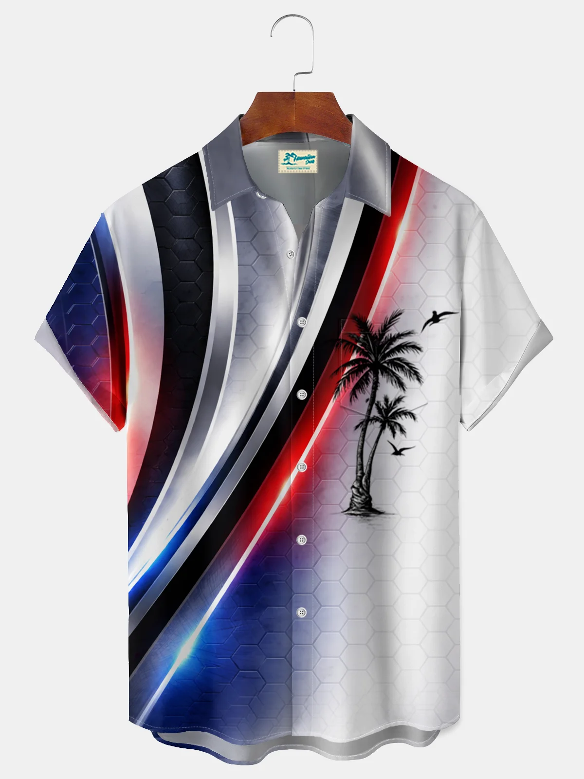 Royaura® Men's Holiday Patriotic Abstract Gradient Cyber Future Streamline Light Palm Tree Print Retro  Button Down Short-Sleeve Shirt Big & Tall
