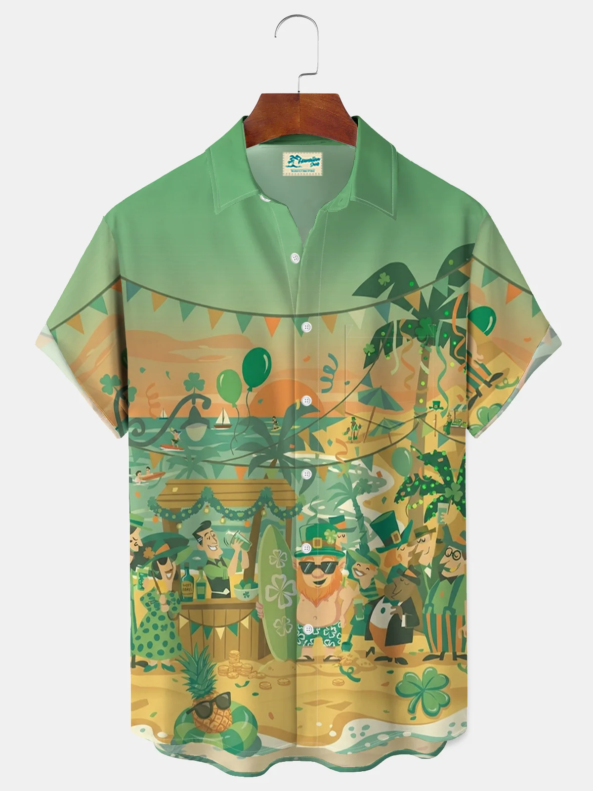Royaura® Men's Holiday St Patrick Seaside Cocktail Party Fairy Gradient Art Print Retro Short-Sleeve Shirt Big & Tall