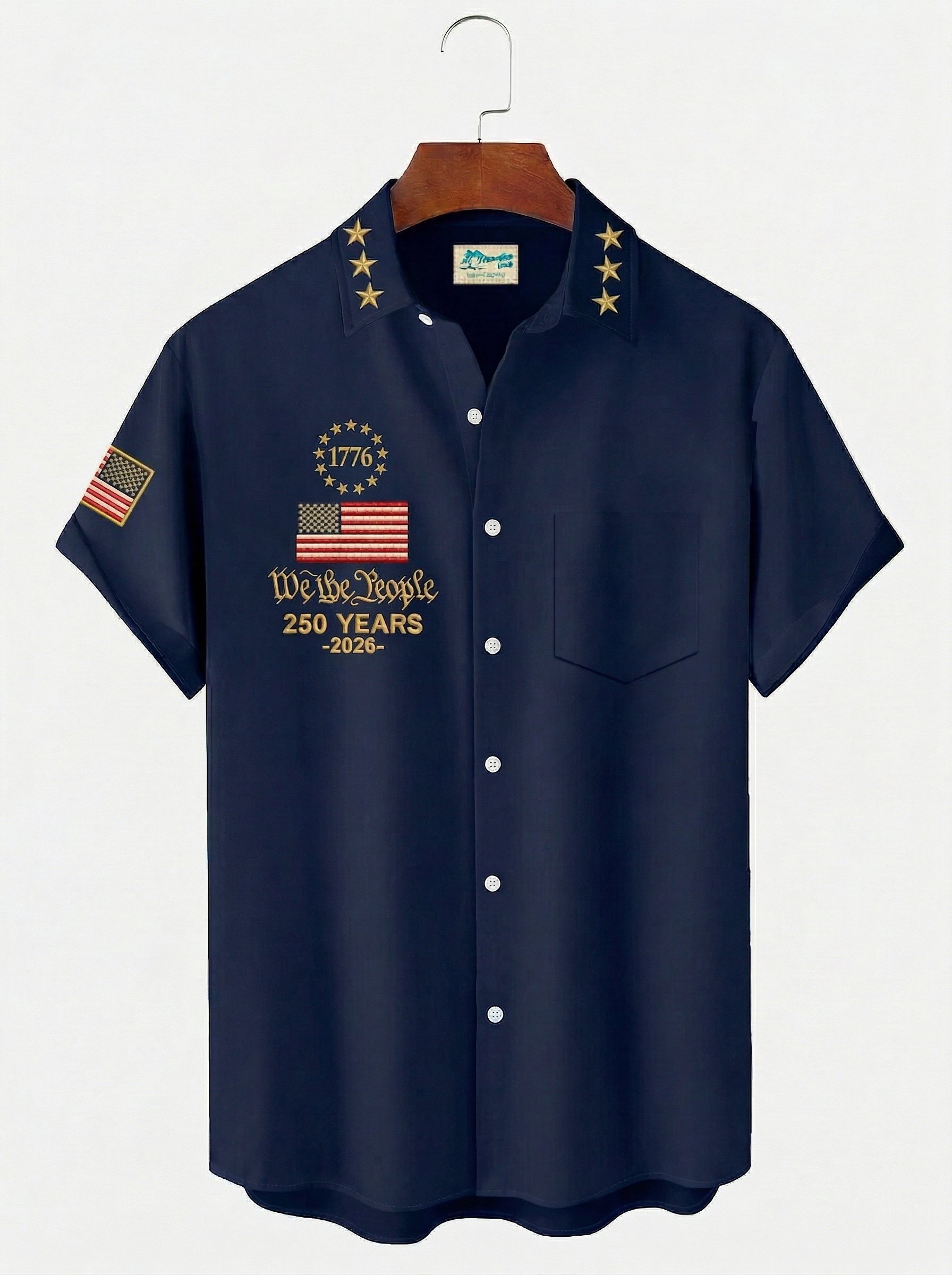 Royaura® Men's Holiday We The People 250 Years Patriotic Constitution Navy Button-Down Pocket Short-Sleeve Shirt Big & Tall