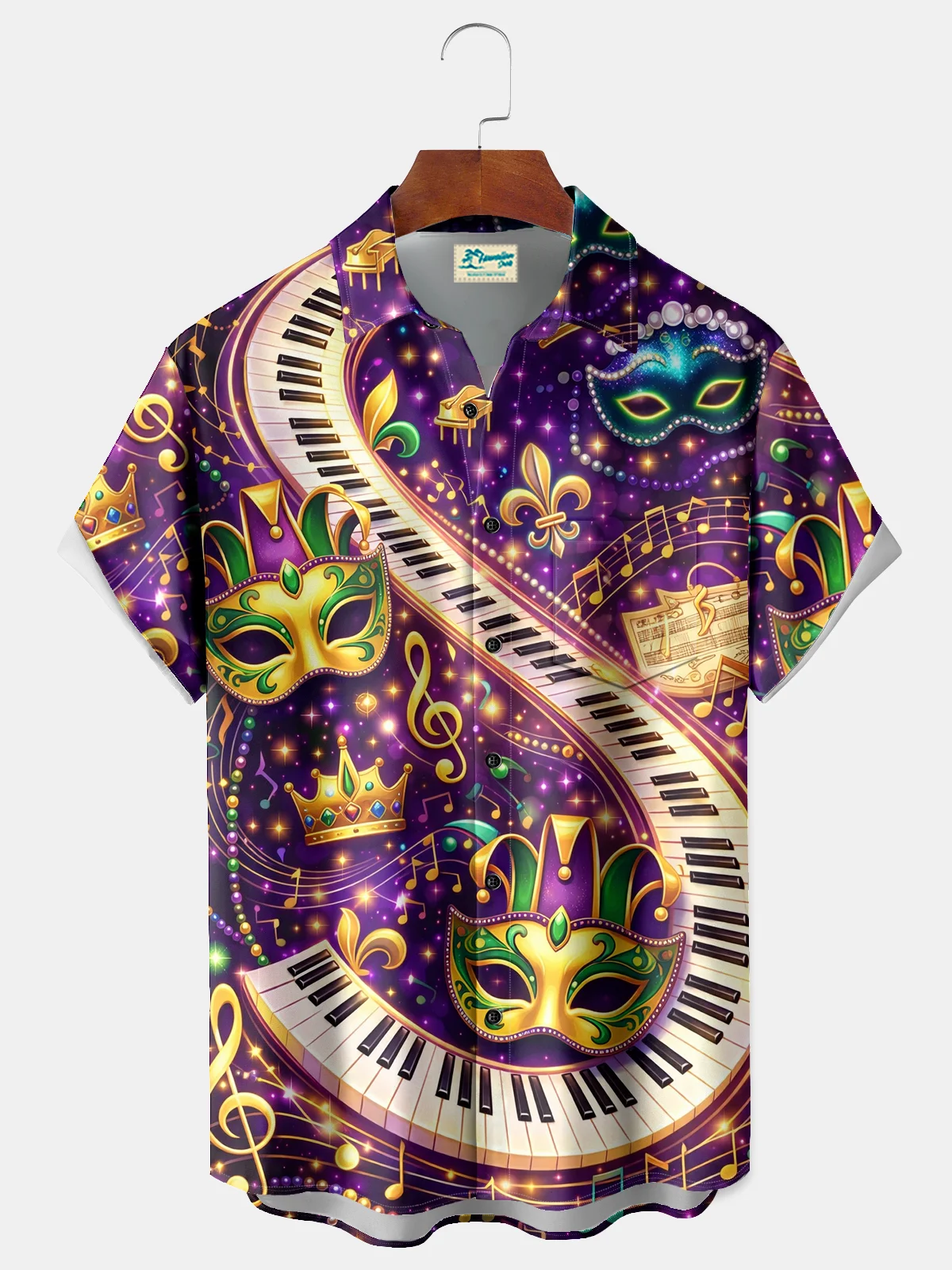 Royaura® Men's Mardi Gras Day Gradient Art Mask Piano Note Jazz Print Retro Short Sleeve Shirt Big & Tall