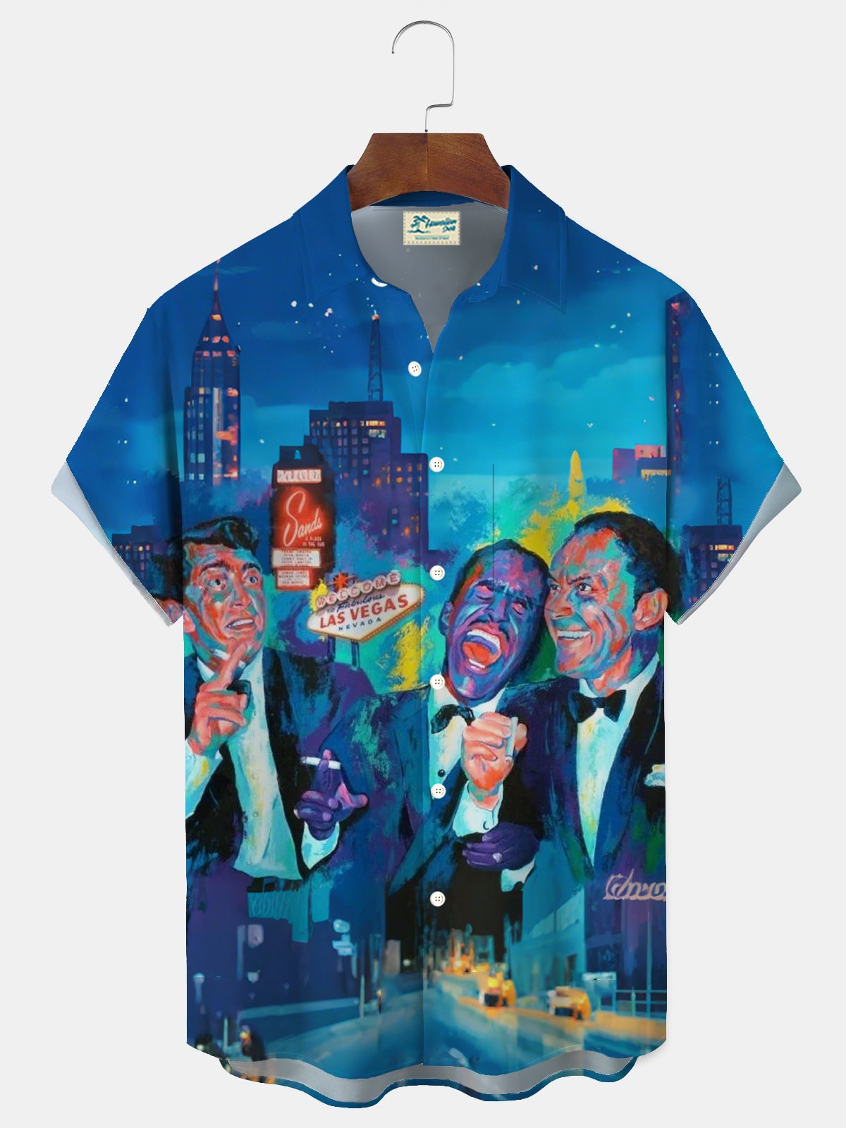 Royaura® Men's Retro Rat Pack Music Printed Button Pocket Short Sleeve Shirt Big & Tall
