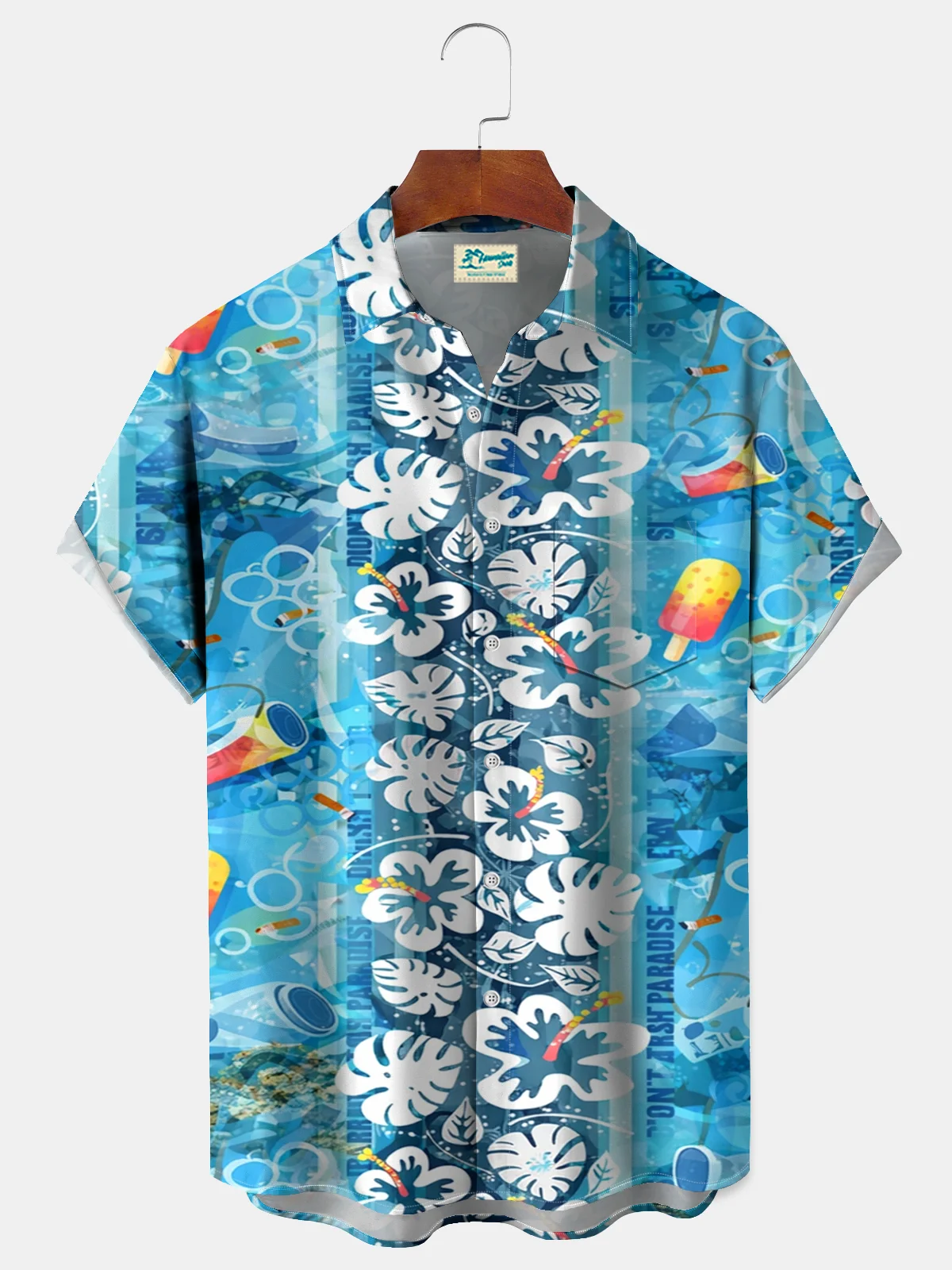 Royaura® Men's Tropic 60s Hibiscus Floral Pop Art Print Retro Short Sleeve-Shirt Big & Tall