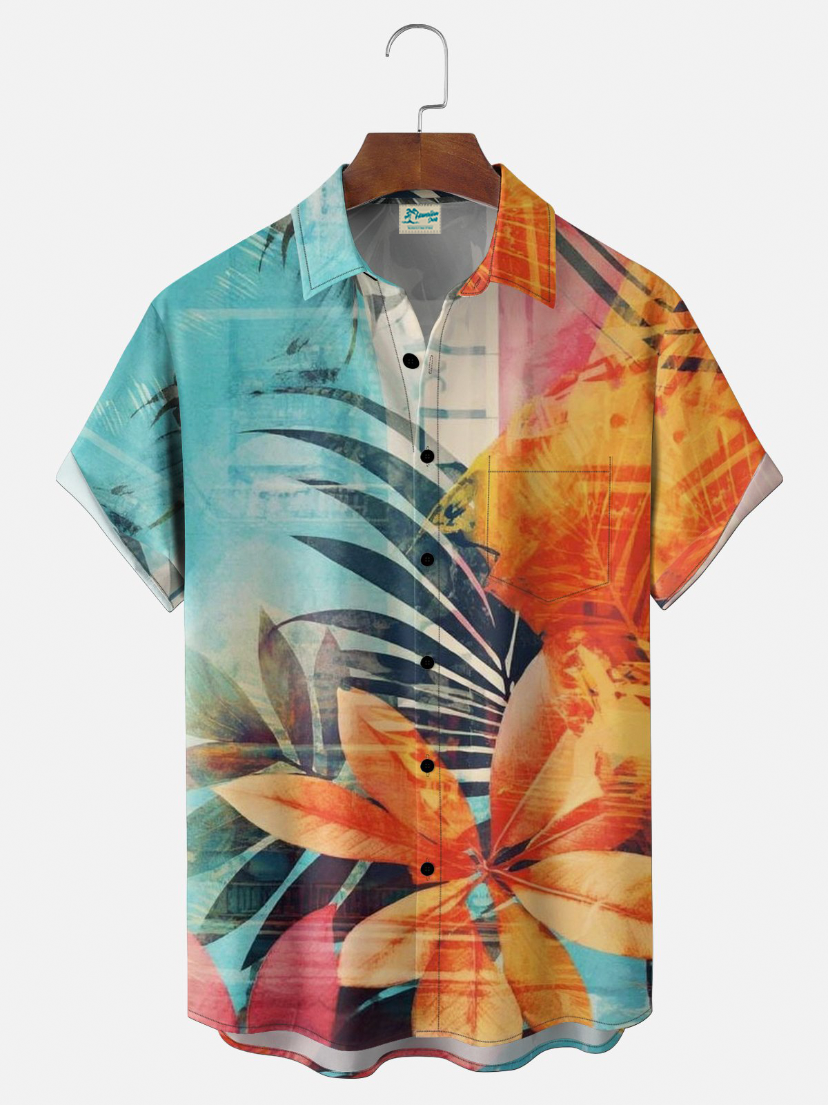 Royaura® Men's Tropic Flowers Plant Palm Tree Gradient Art Print Retro Short-Sleeve Shirt Big & Tall