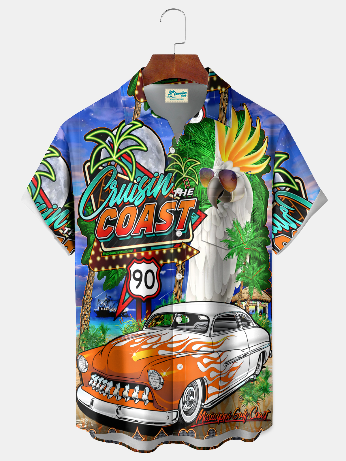Royaura® Men's Tropic Parrot Sunset Beach Travel Highway 90 Print Retro Short Sleeve Shirt Big & Tall