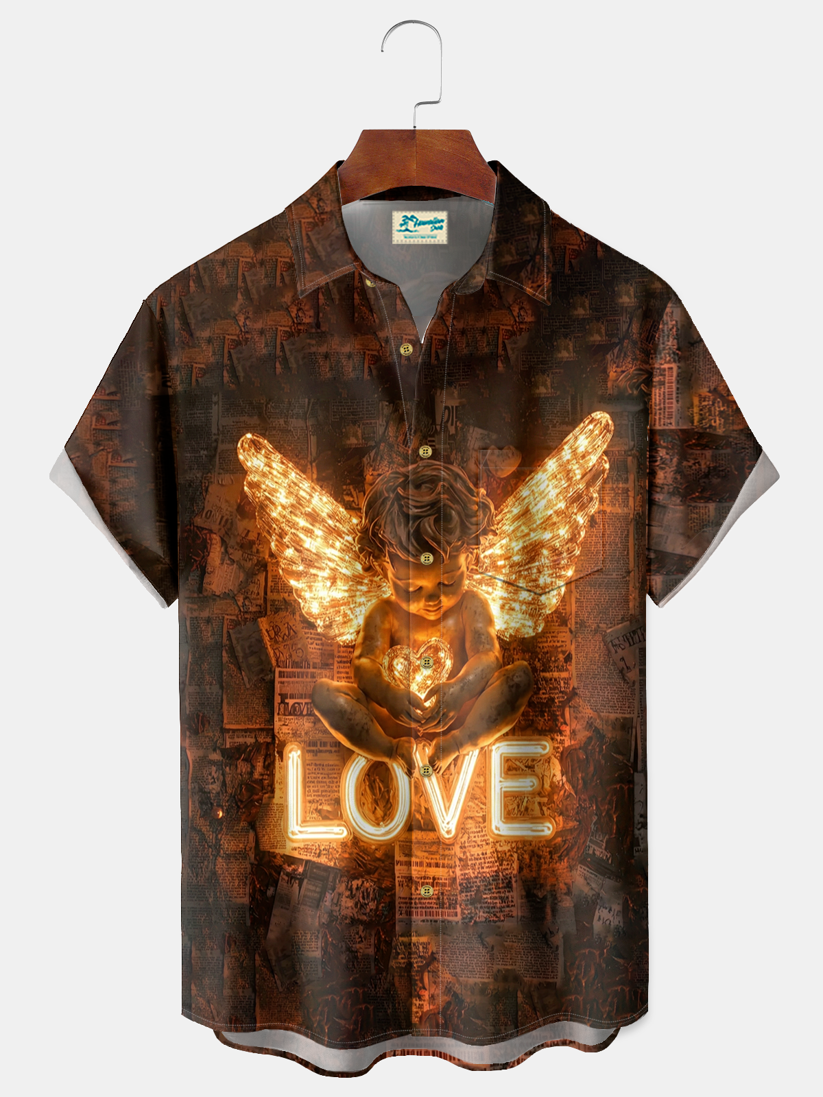 Royaura® Men's Valentine's Day Burning Cupid Illustration Art Gift Print Retro Short Sleeve Shirt Big & Tall