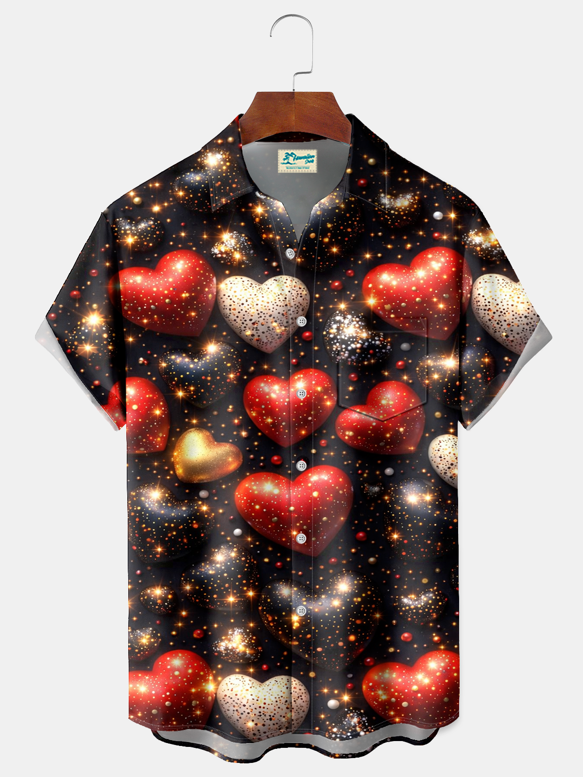 Royaura® Men's Valentine's Day Love Shining Print Retro Short Sleeve Shirt Big & Tall