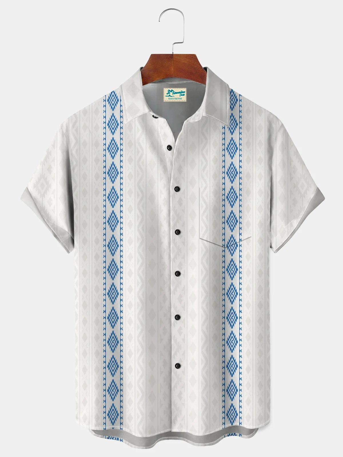 Royaura® Men's Vintage Geometric Gradient Art Rhombus Bohemia Print Retro Short-Sleeve Shirt Big & Tall