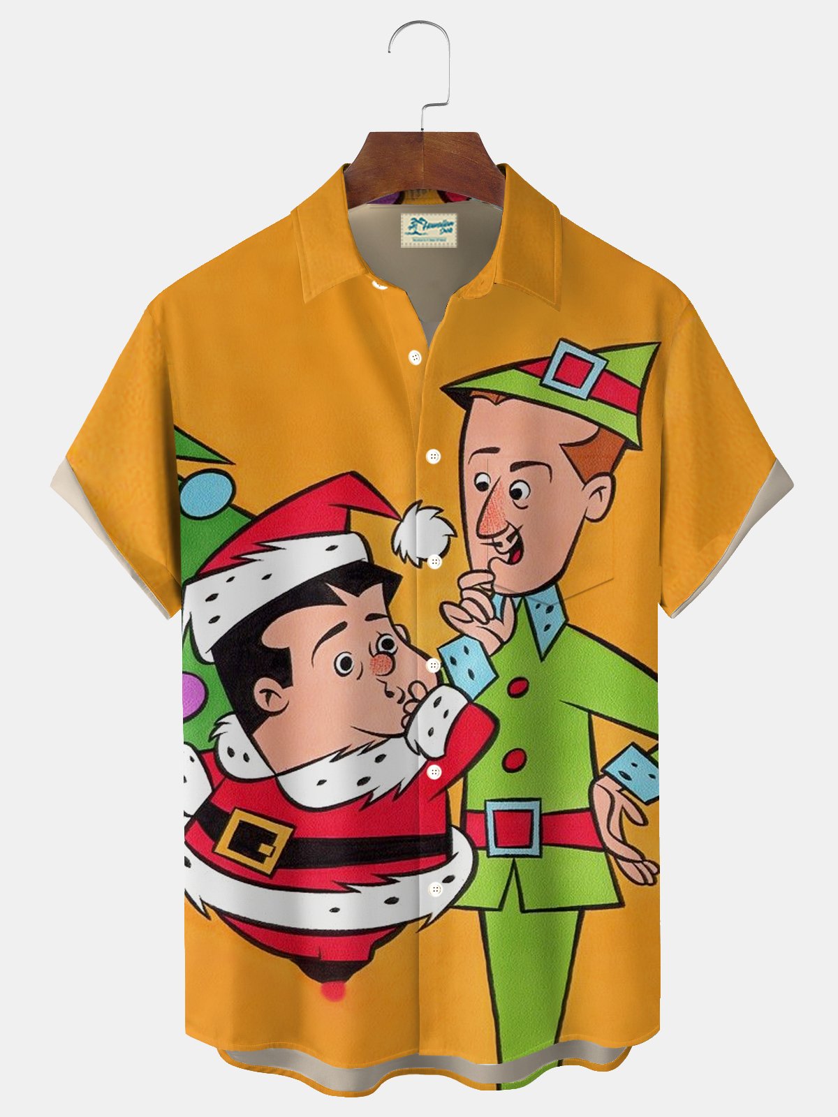 Royaura® Mens Christmas shirts Christmas Cartoon Gradient Print Men's Button Pocket Hawaiian Short-Sleeve Shirt Novelty Christmas shirts Big & Tall