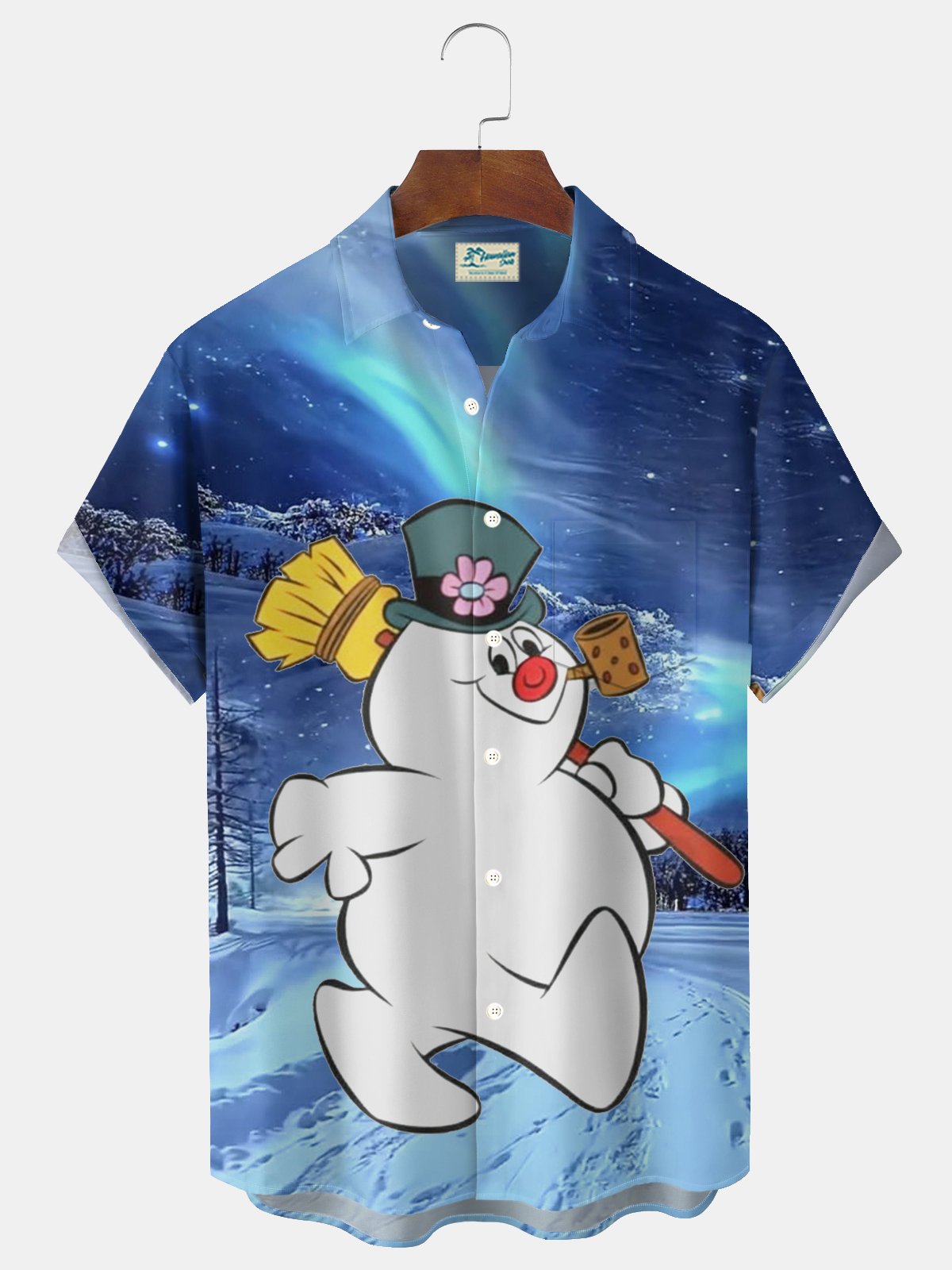 Royaura® Mens Christmas shirts Christmas Cartoon Gradient Print Men's Button Pocket Hawaiian Short-Sleeve Shirt Novelty Christmas shirts Big & Tall