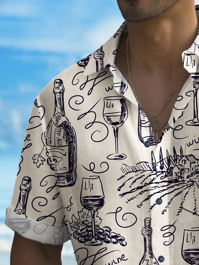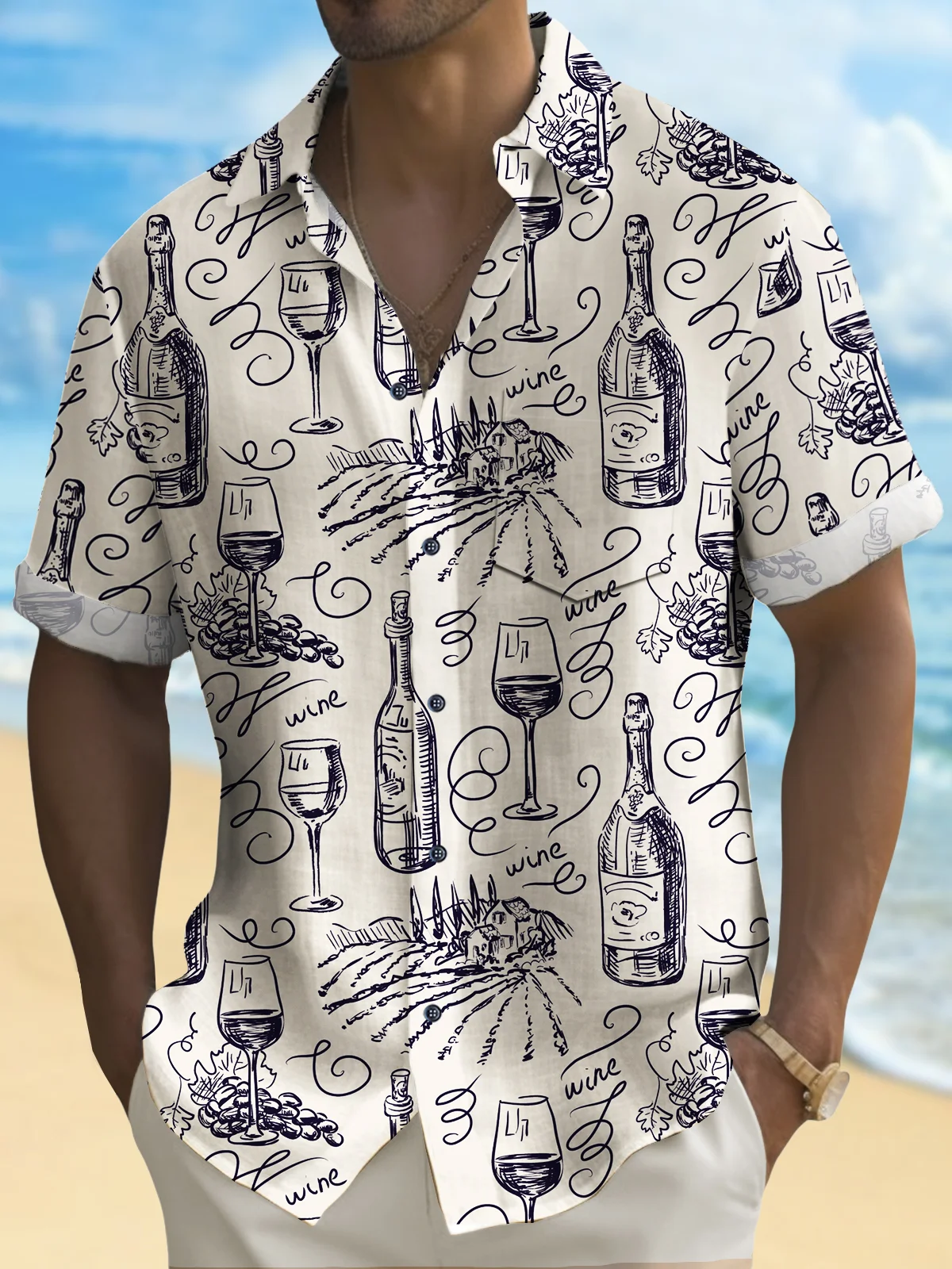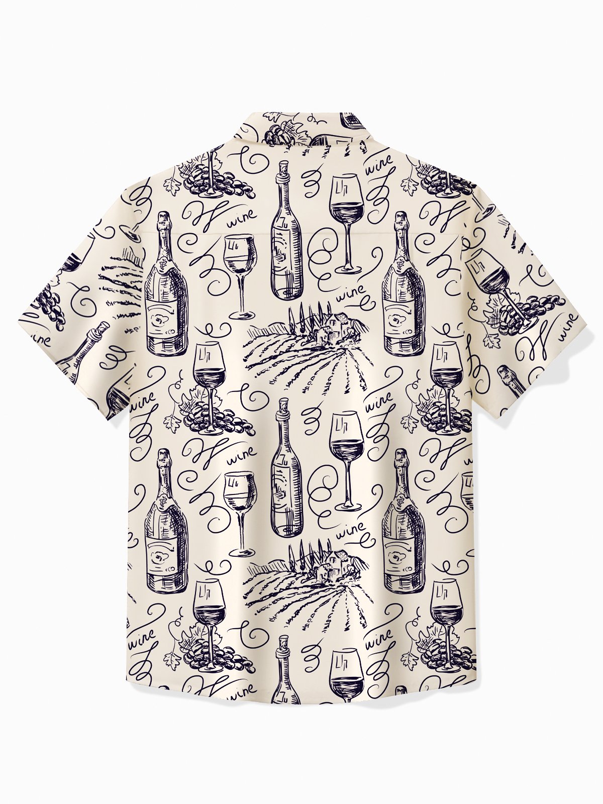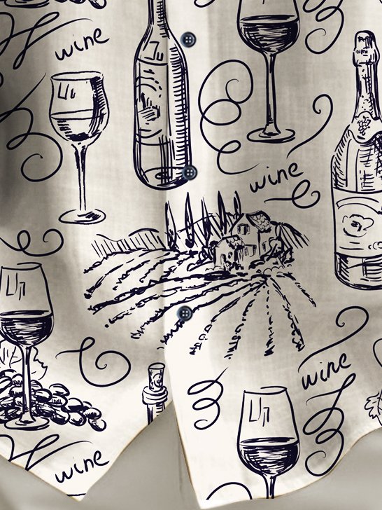 Royaura® National Wine Day Wine Line Print Men's Button Pocket Shirt