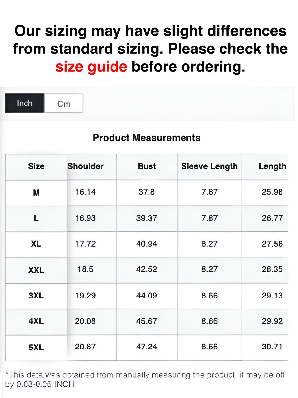 | Size | Sleeve Length | Shoulder | Length | Bust |