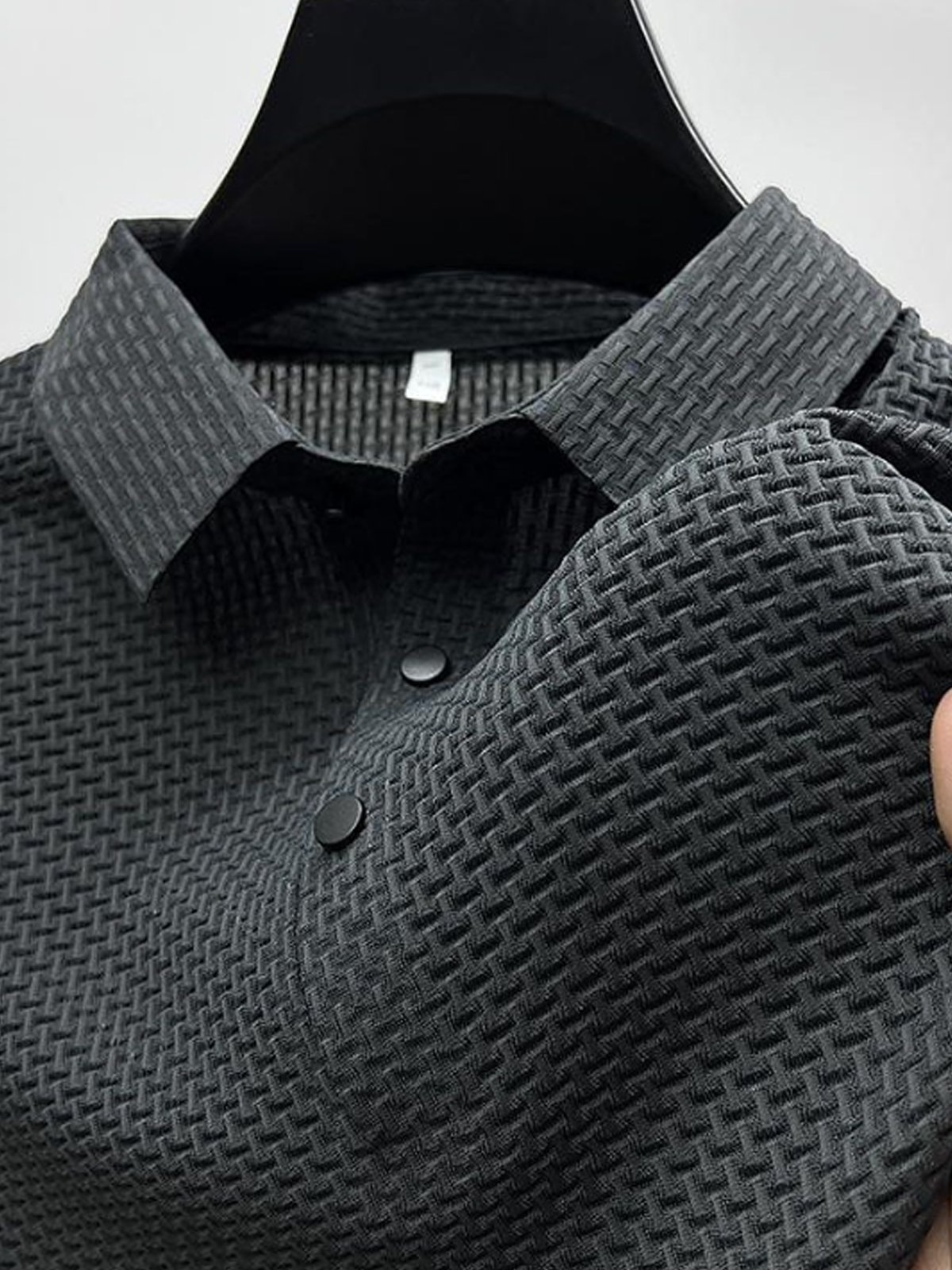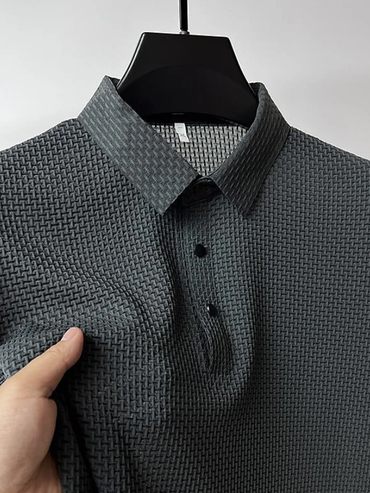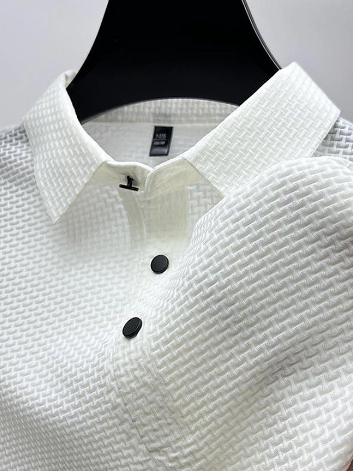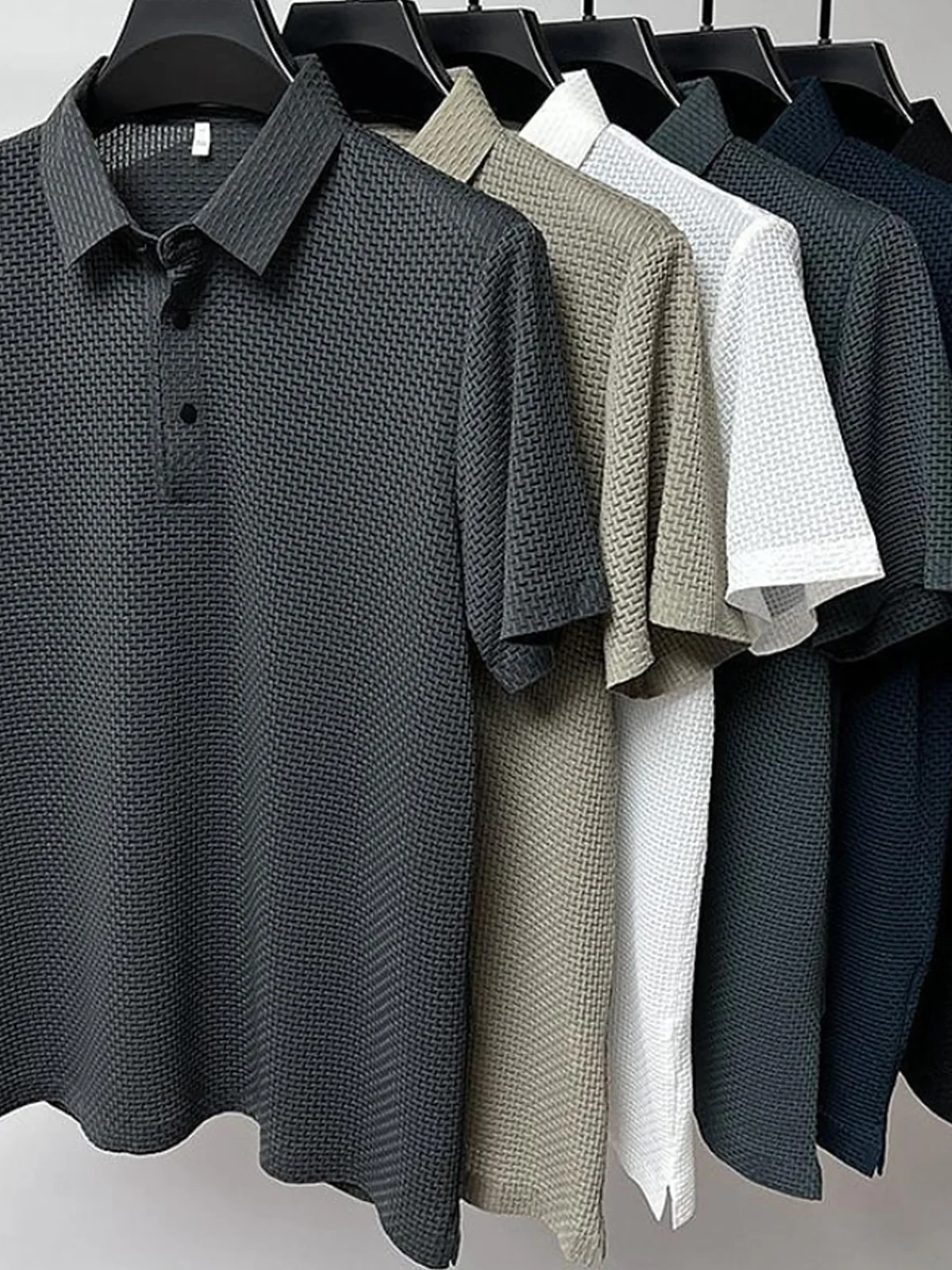 Royaura® Retro Basics Quick-Drying Seersucker Men's Button Lapel POLO Shirt Big & Tall