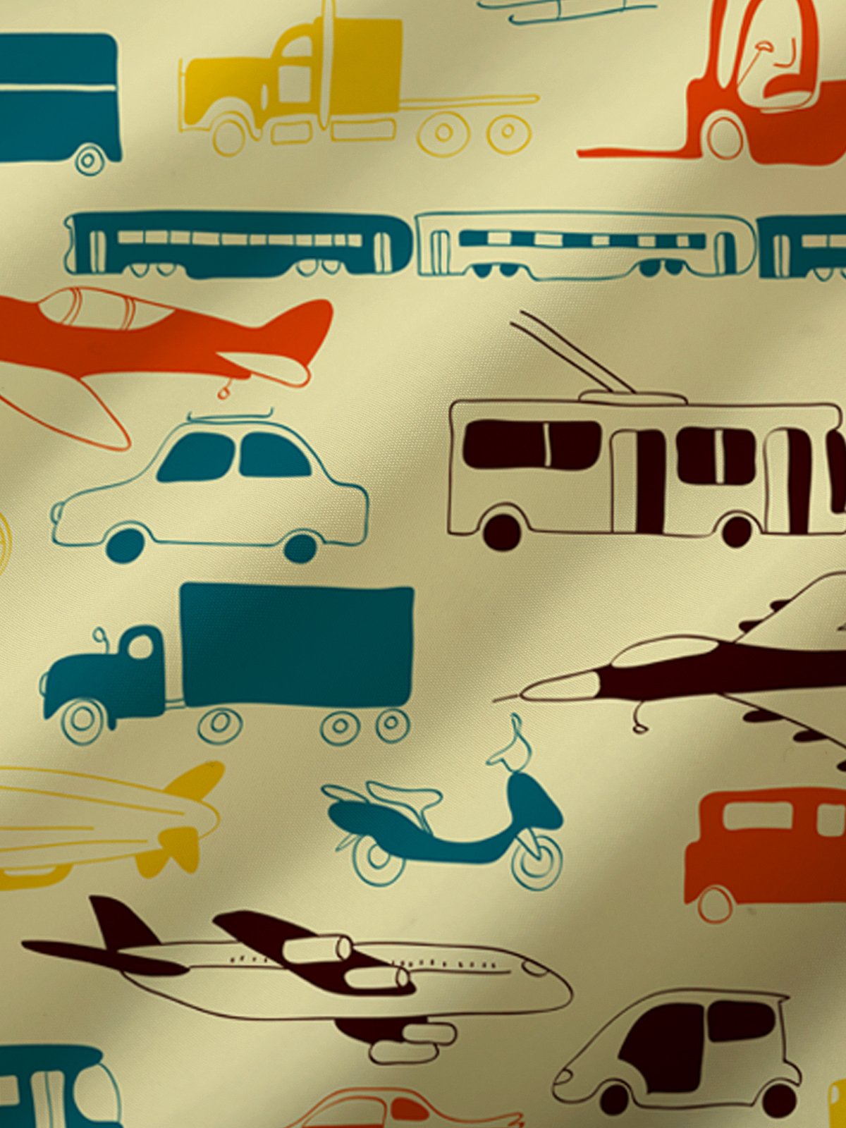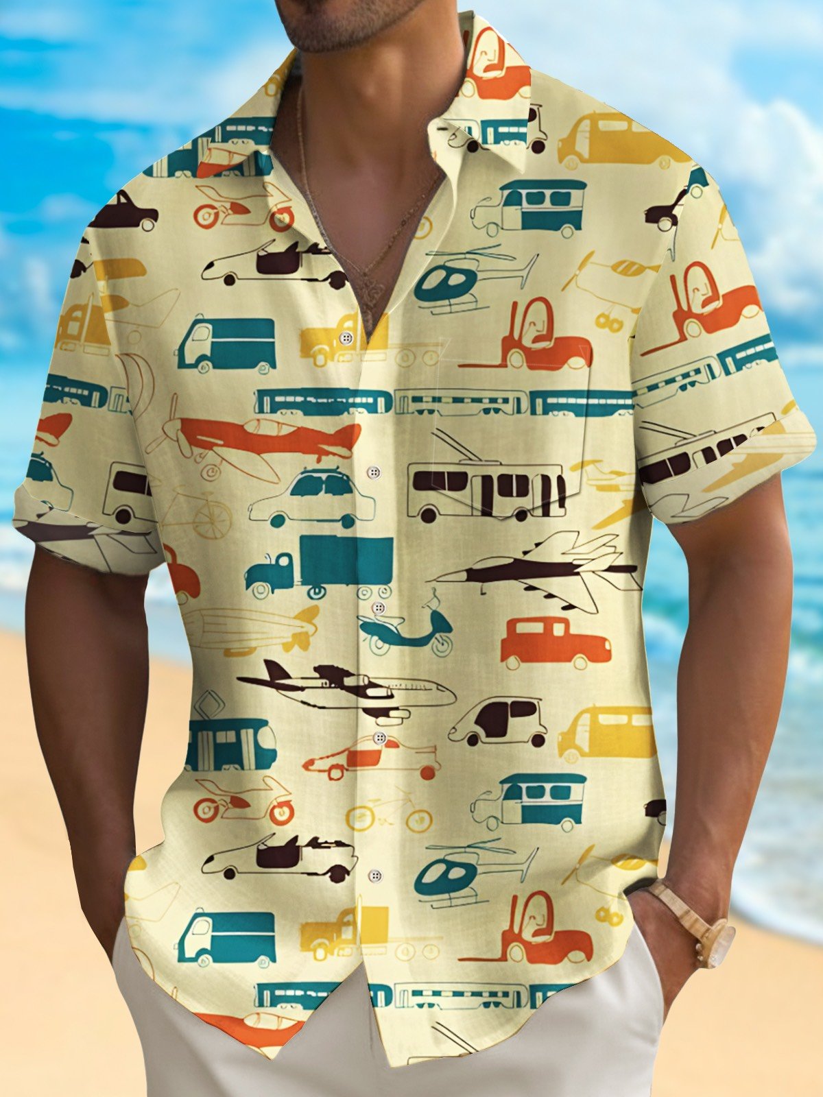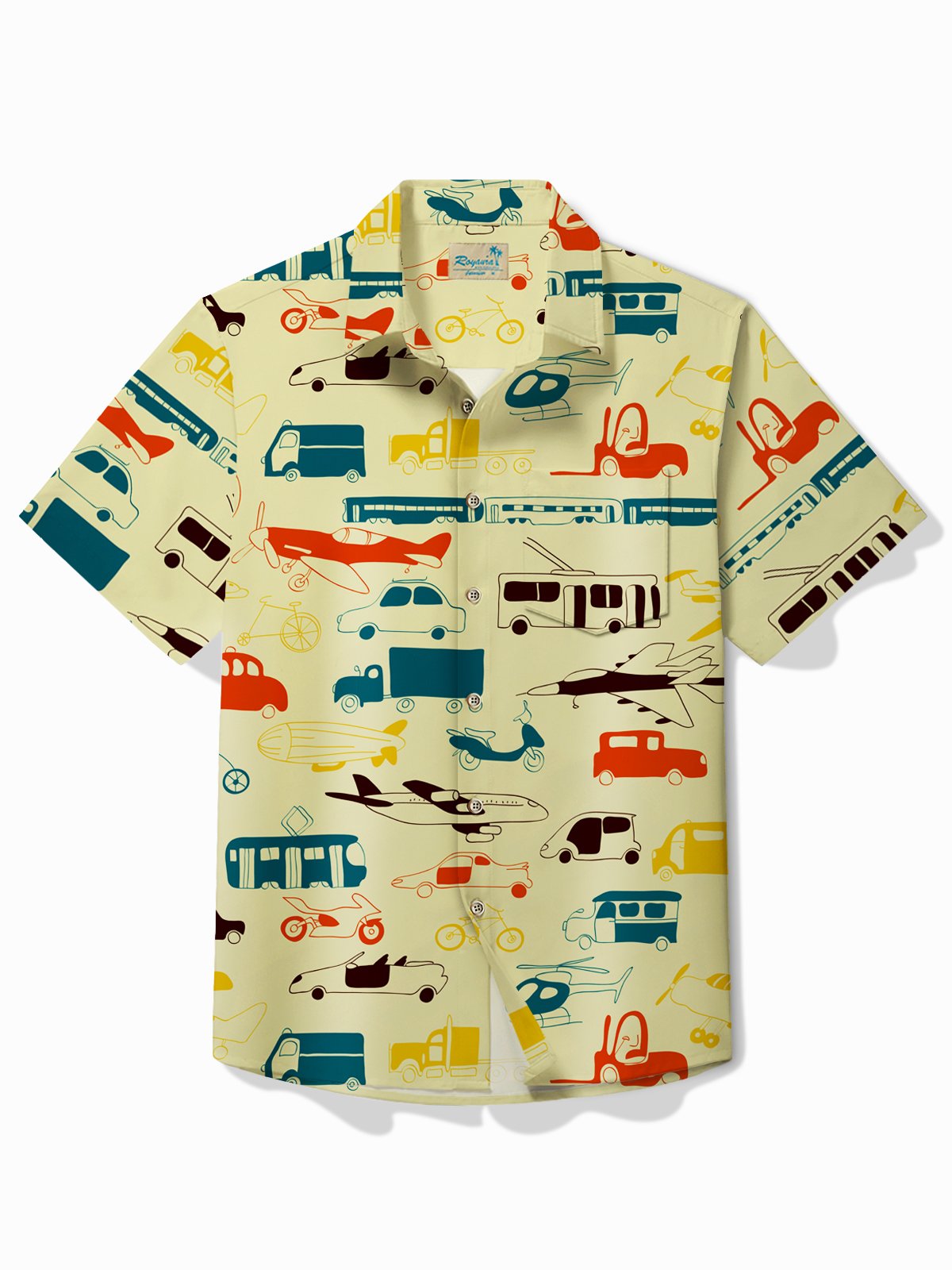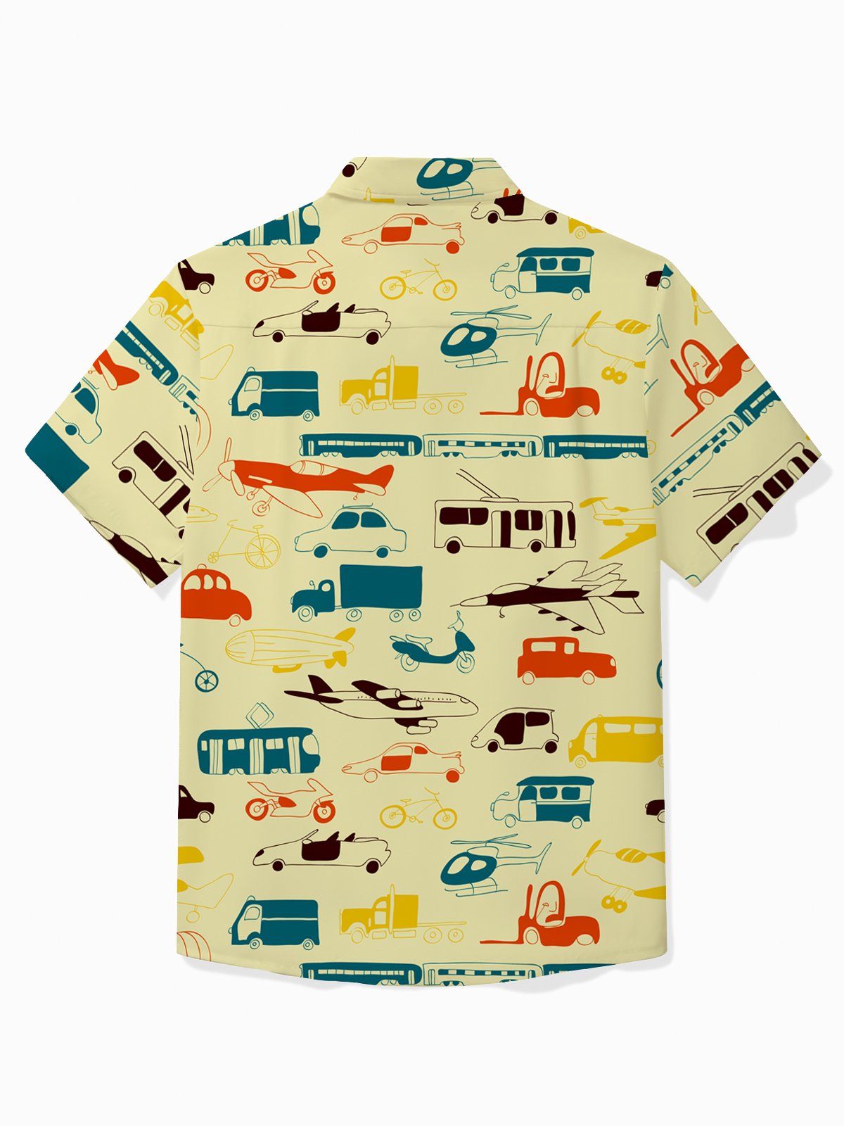 Royaura® Retro Car Travel Vehicle Print Men's Button Pocket Short Sleeve Shirt