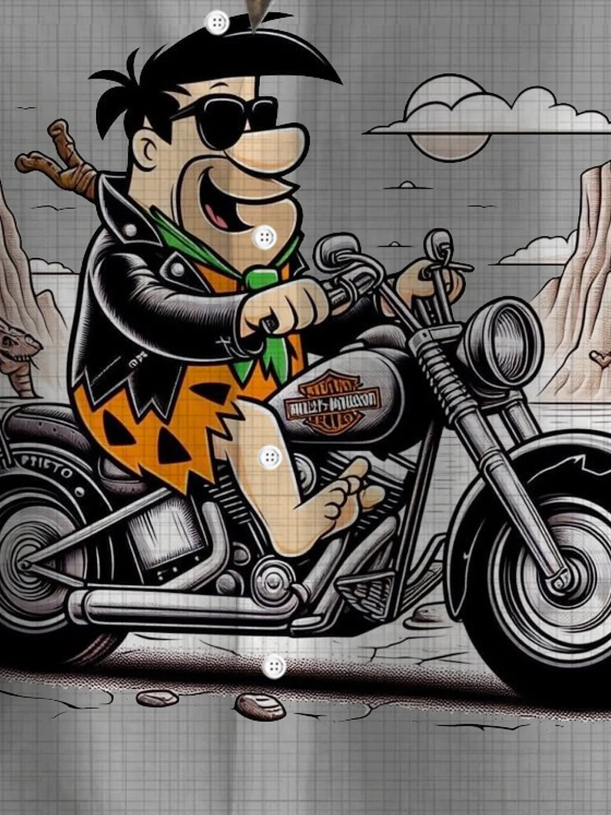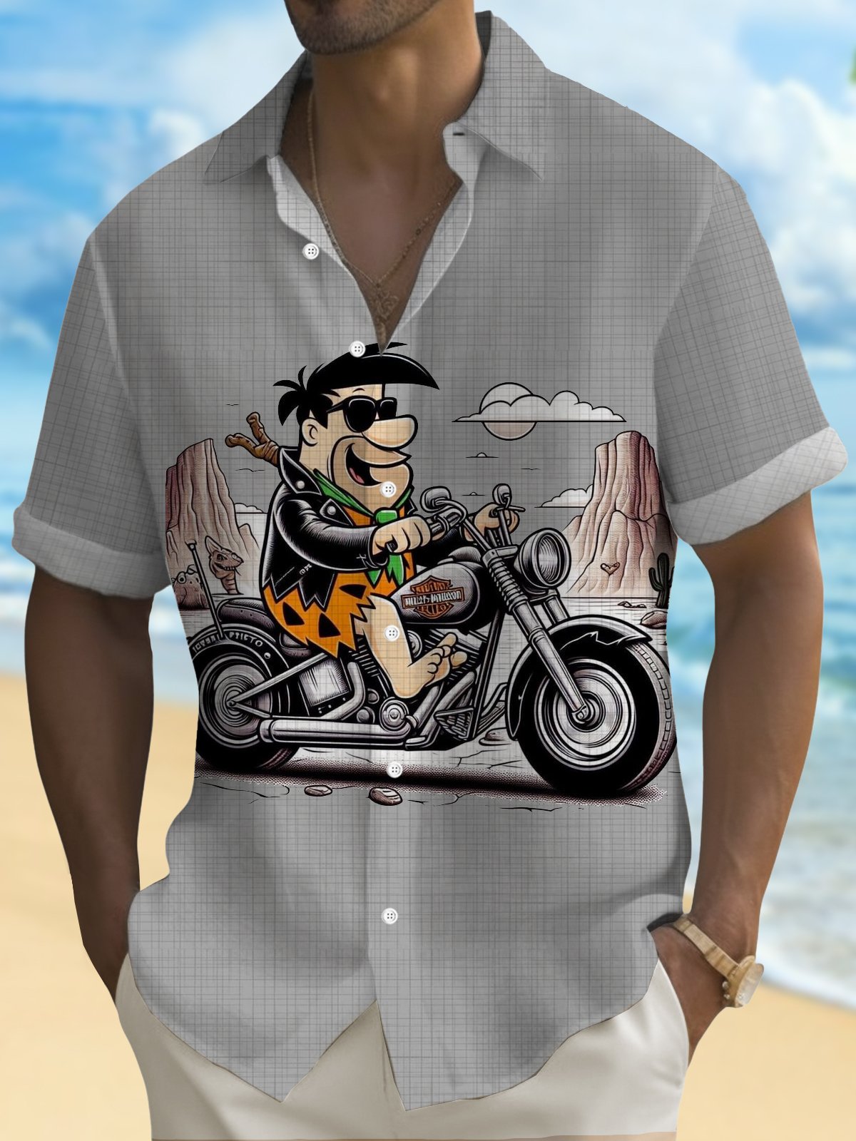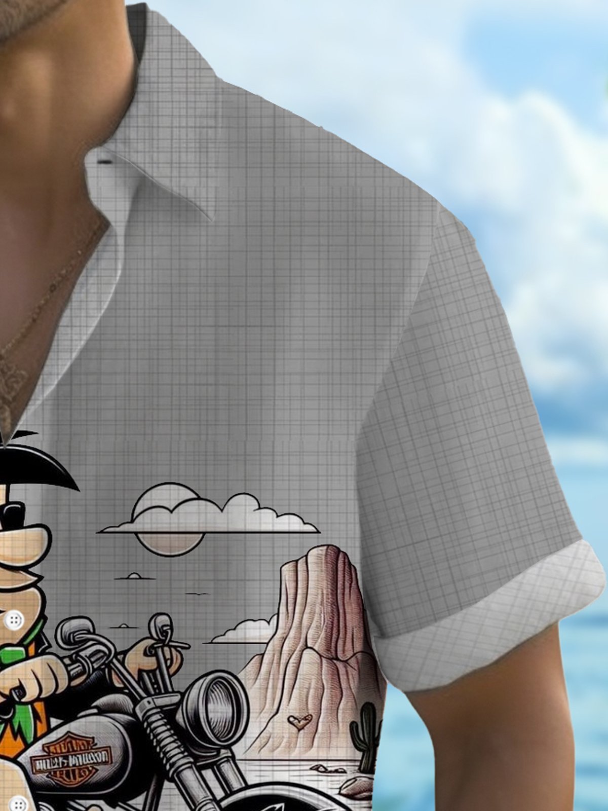 Royaura® Retro Cartoon Harley Model Car Print Men's Button Pocket Short Sleeve Aloha Shirt Big & Tall
