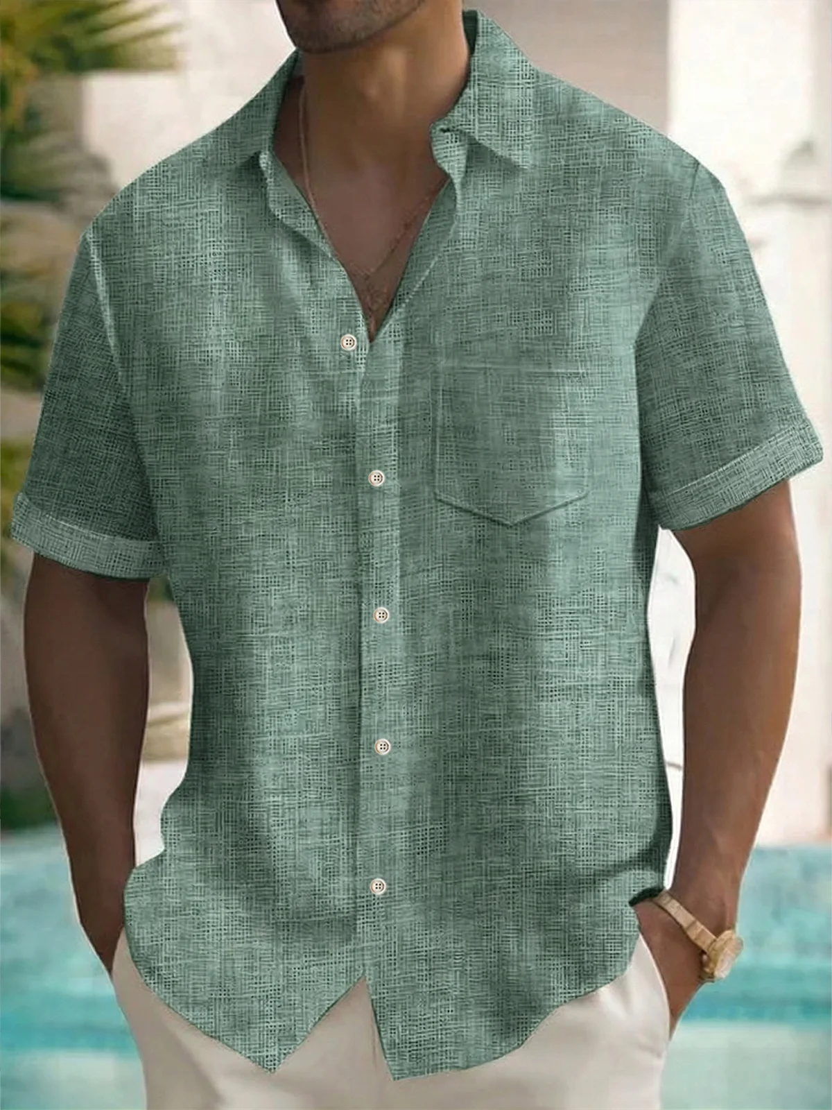 Royaura® Men's Retro Textured Solid Green Casual Short Sleeve Button Down Hawaiian Shirt Big & Tall