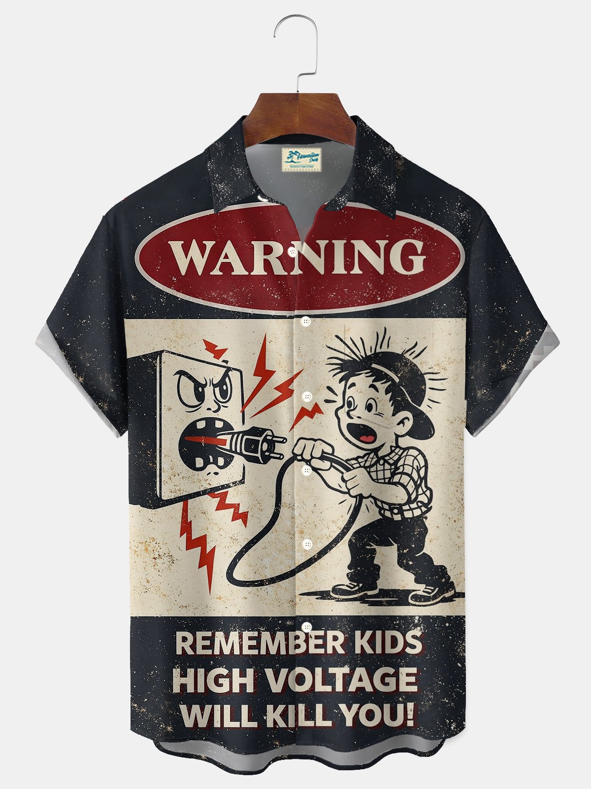 Royaura® Retro Dangerous Warning Sign Print Men's Button-Down Short-Sleeved Shirt Big & Tall
