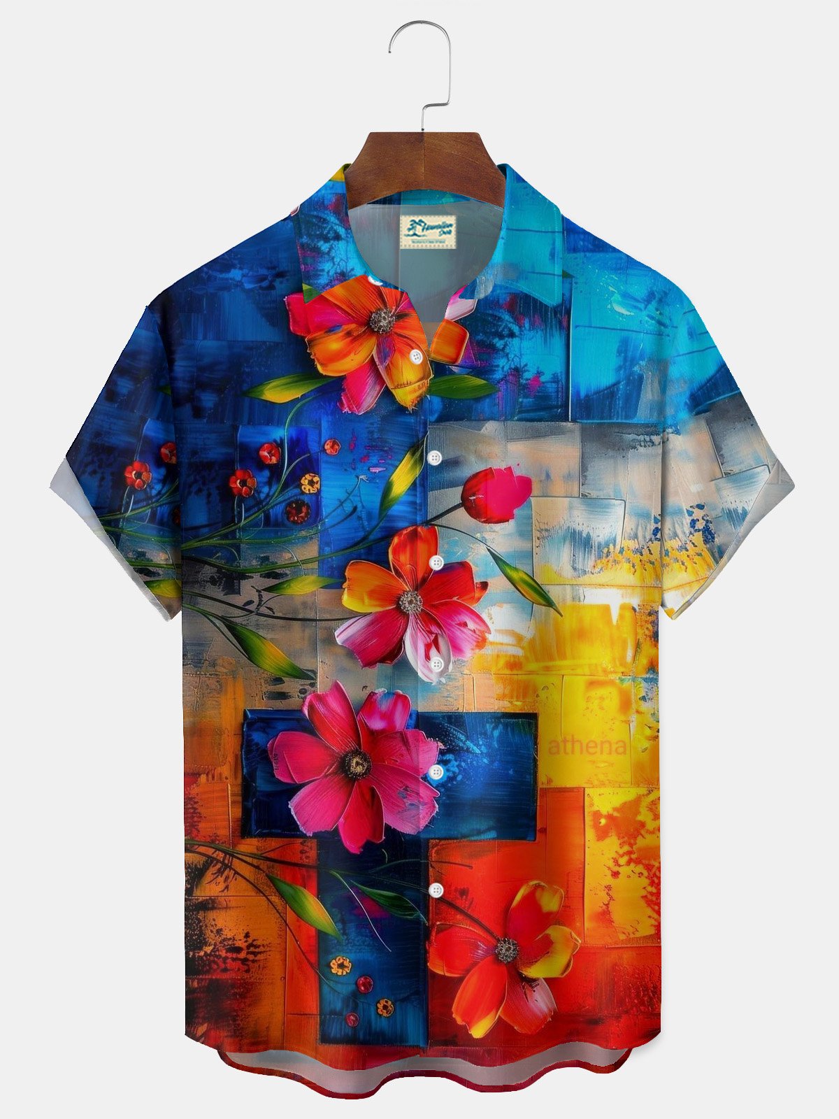 Royaura® Retro Floral Art Print Men's Button-Down Short-Sleeve Hawaiian Shirt Big & Tall