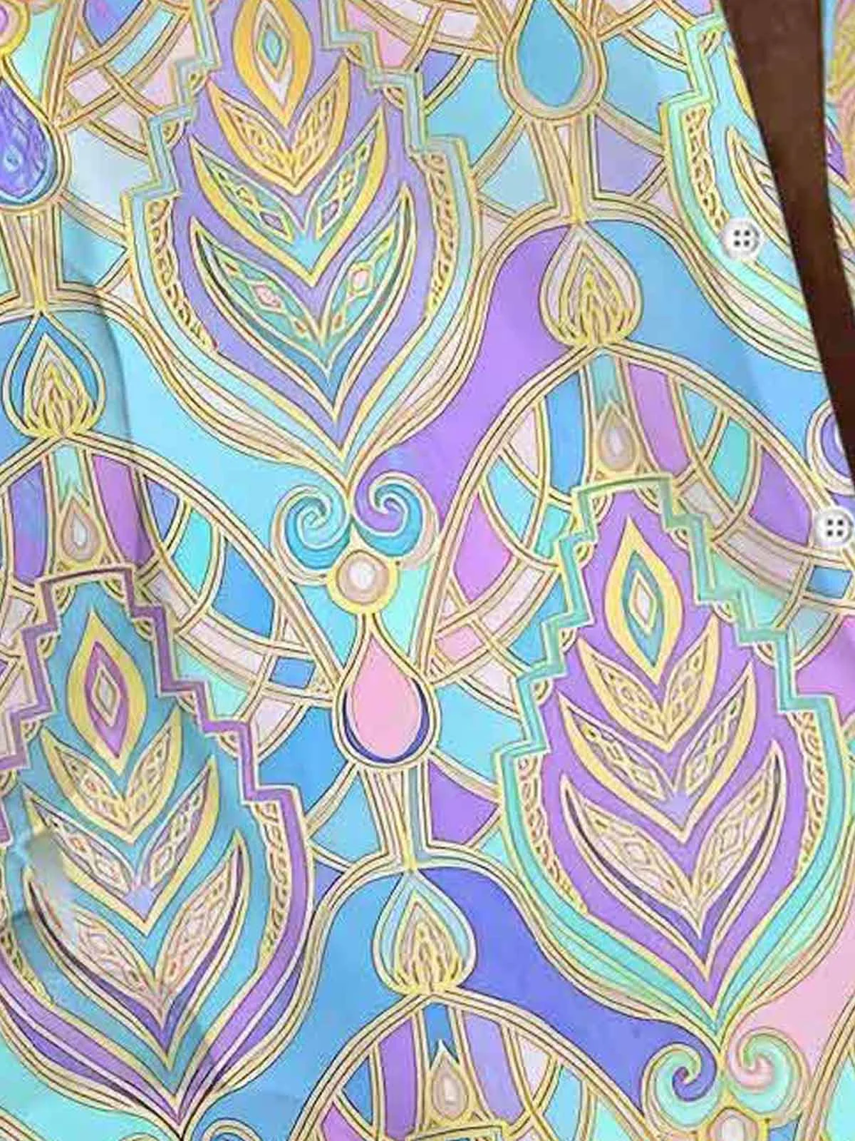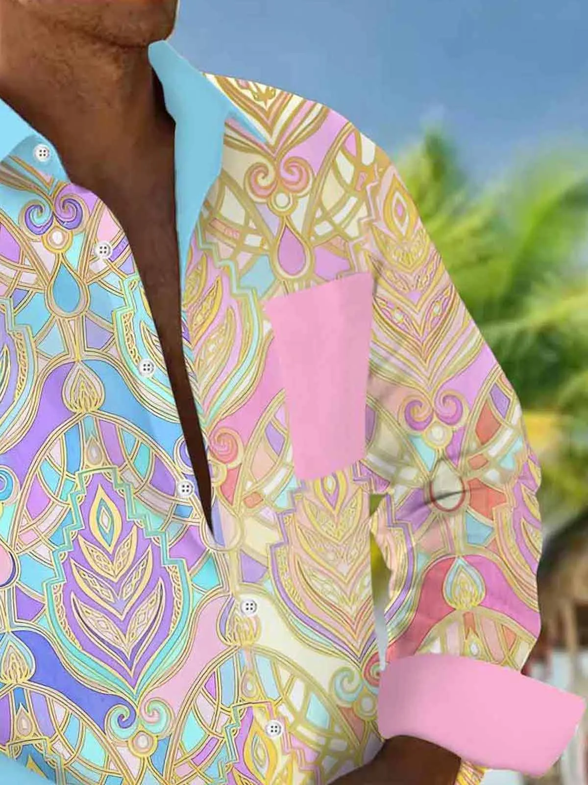 Royaura® Retro Floral Gold Gradient Print Men's Button Pocket Long Sleeve Shirt Big & Tall