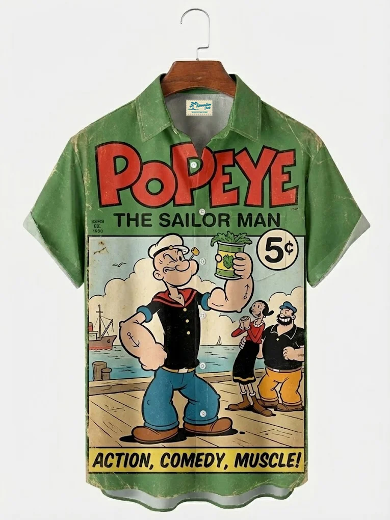 Royaura® Retro Fun Cartoon Print Men's Button-Down Short-Sleeved Shirt Big & Tall