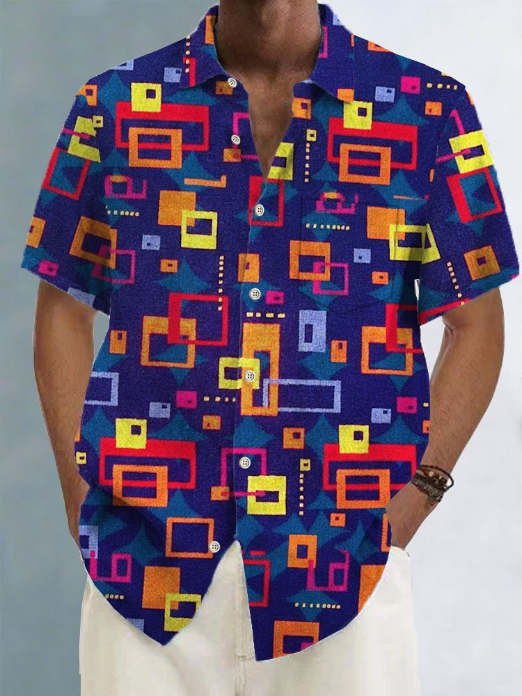 Royaura® Retro Geometric Print Men's Button-Down Short-Sleeve Shirt Big & Tall