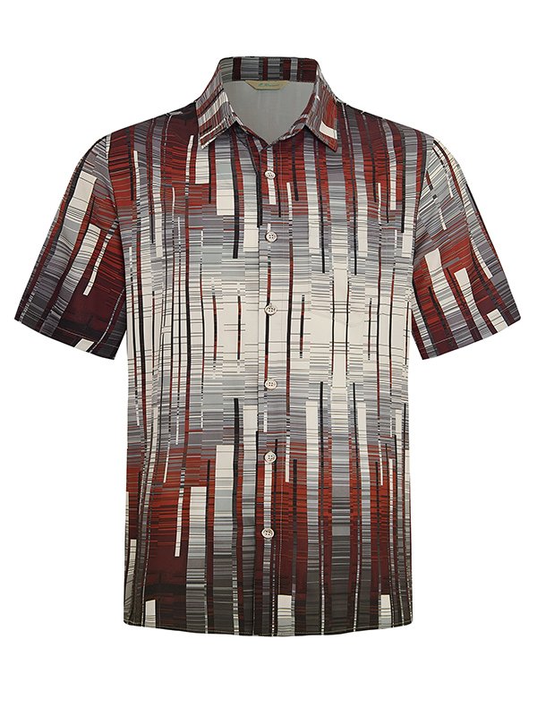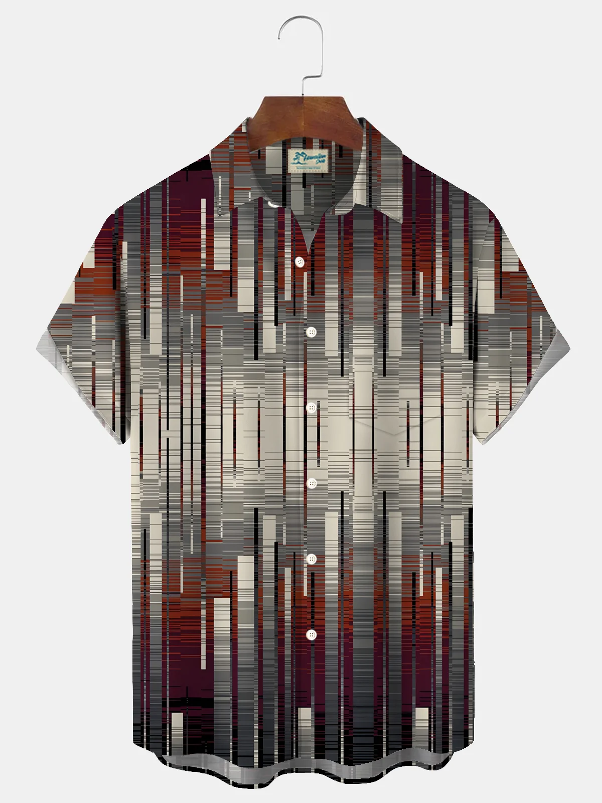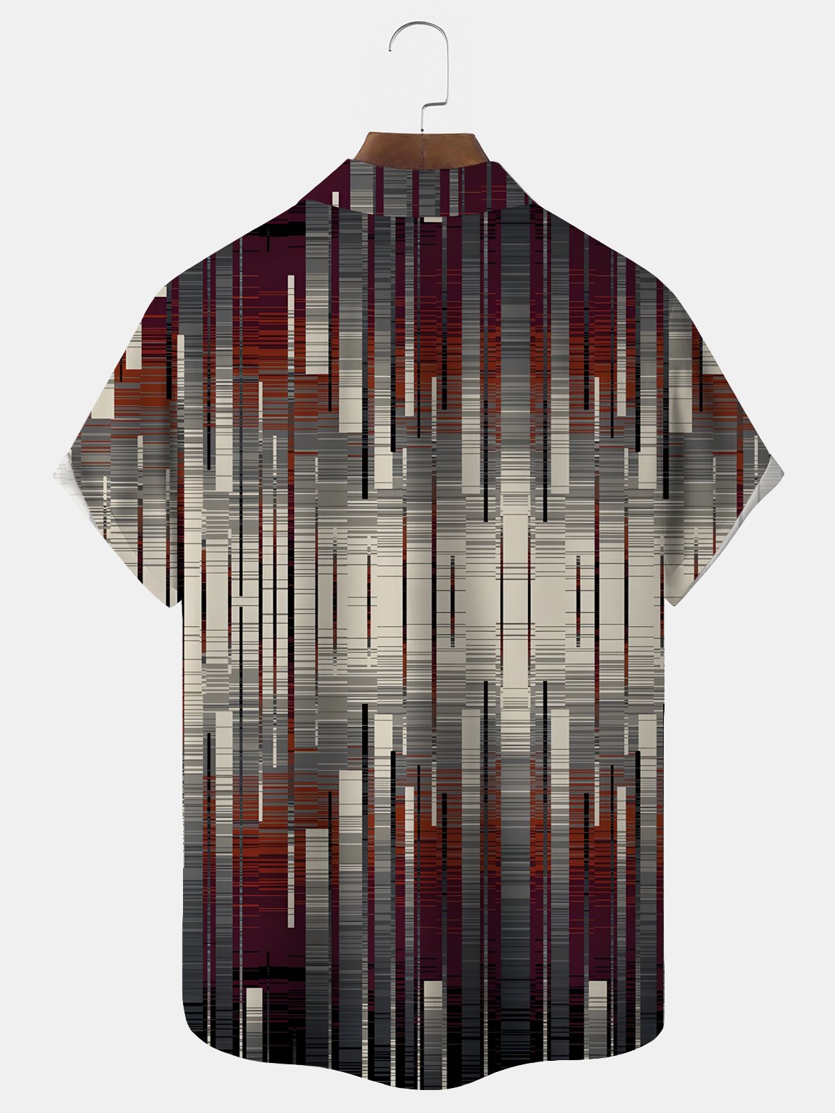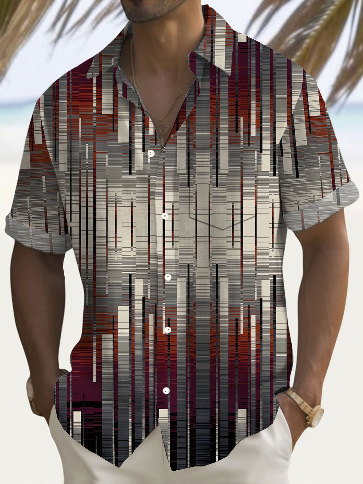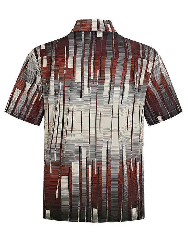 Royaura® Retro Geometric Texture 3D Print Men's Button Pocket Short Sleeve Shirt Big & Tall