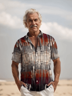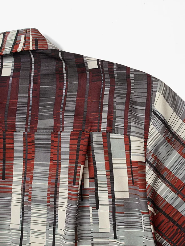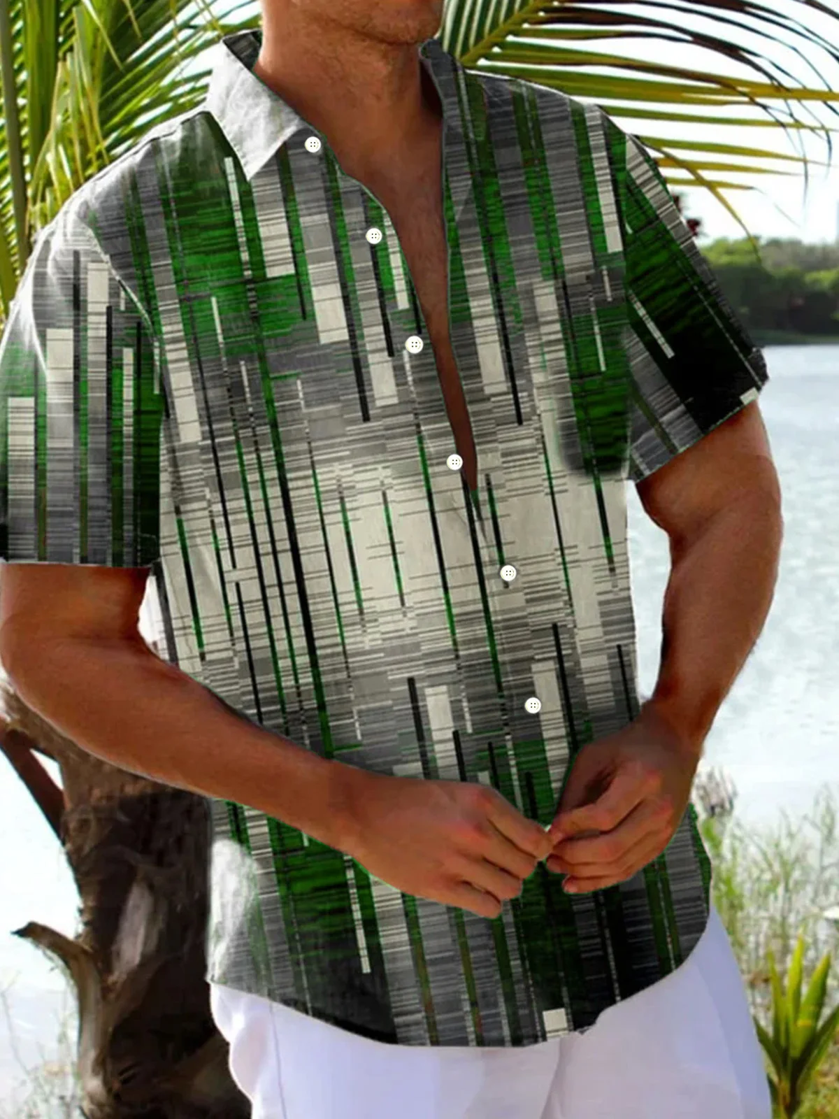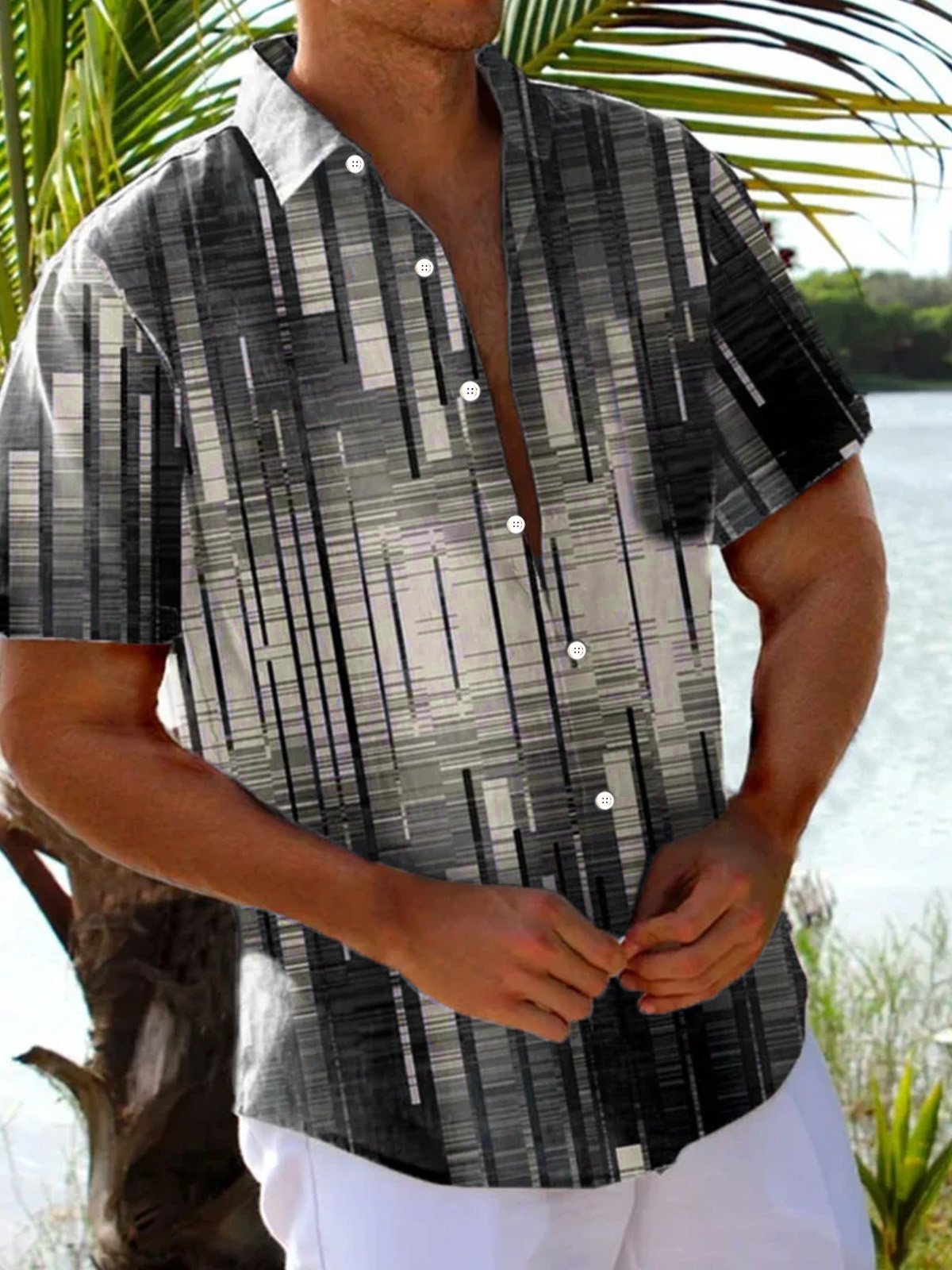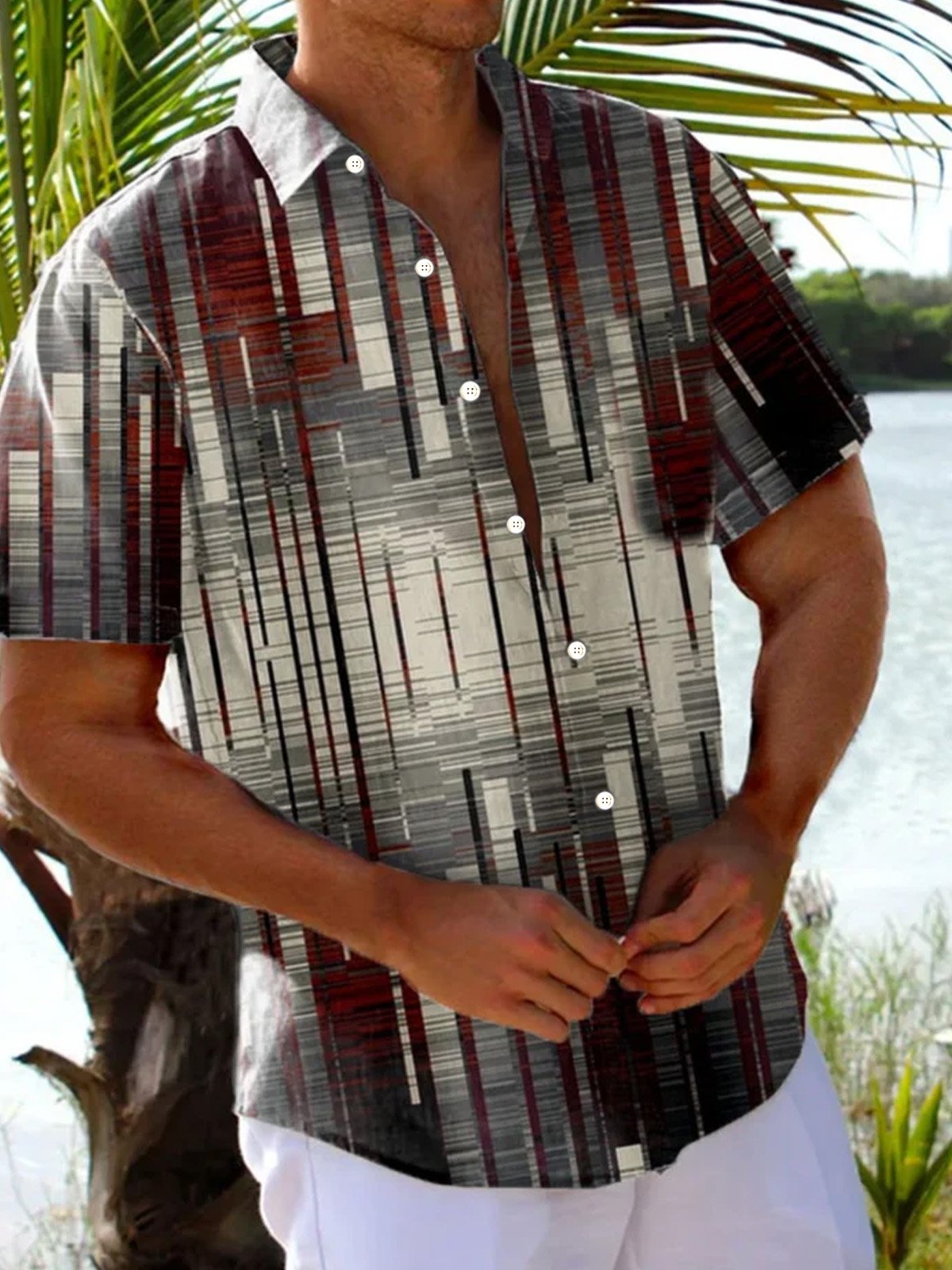 Royaura® Retro Geometric Texture 3D Print Men's Button Pocket Short Sleeve Shirt Big & Tall