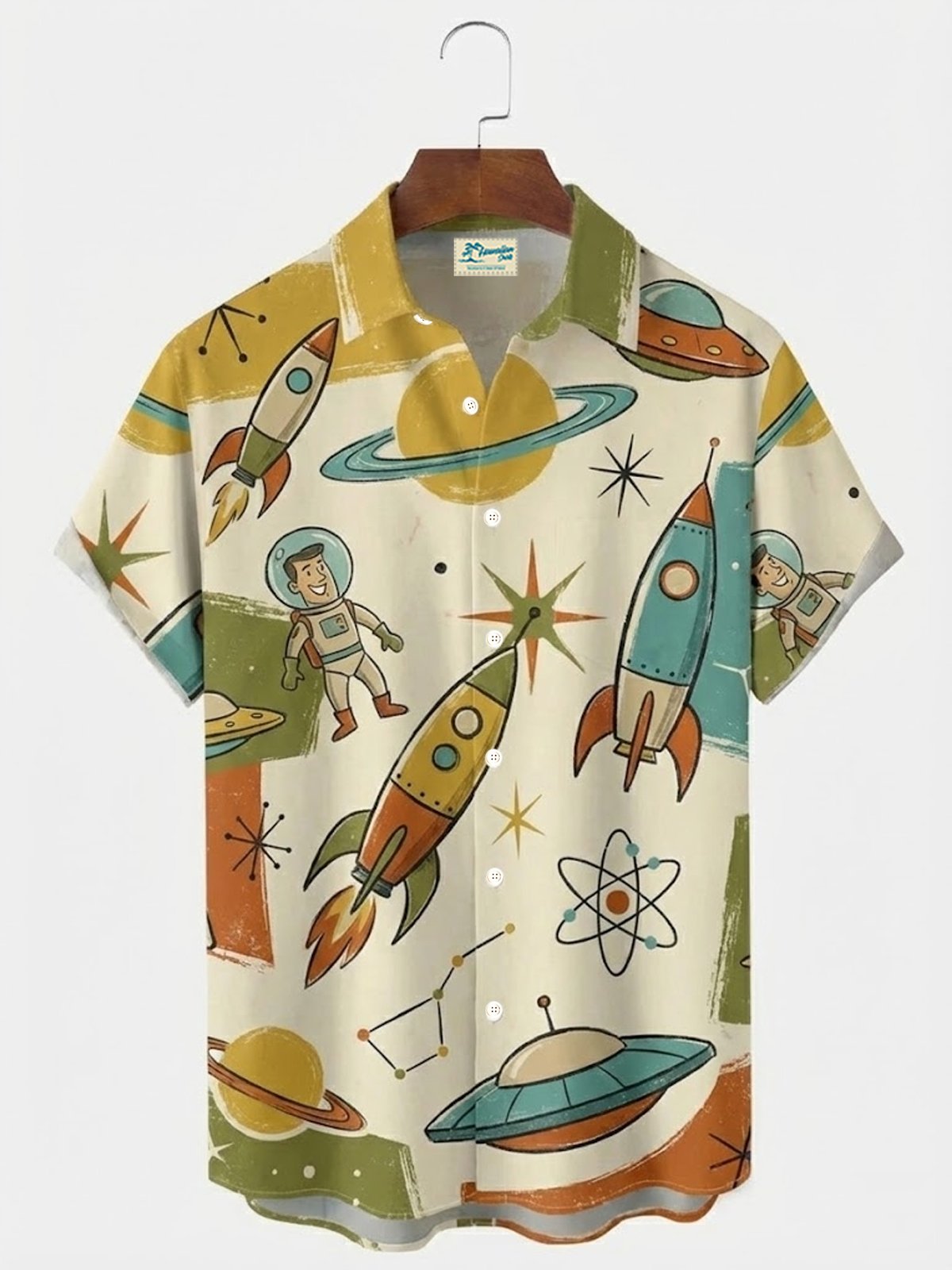 Royaura® Retro Gradient Art Geometric Universe Print Men's Button-Down Short-Sleeved Shirt Big & Tall
