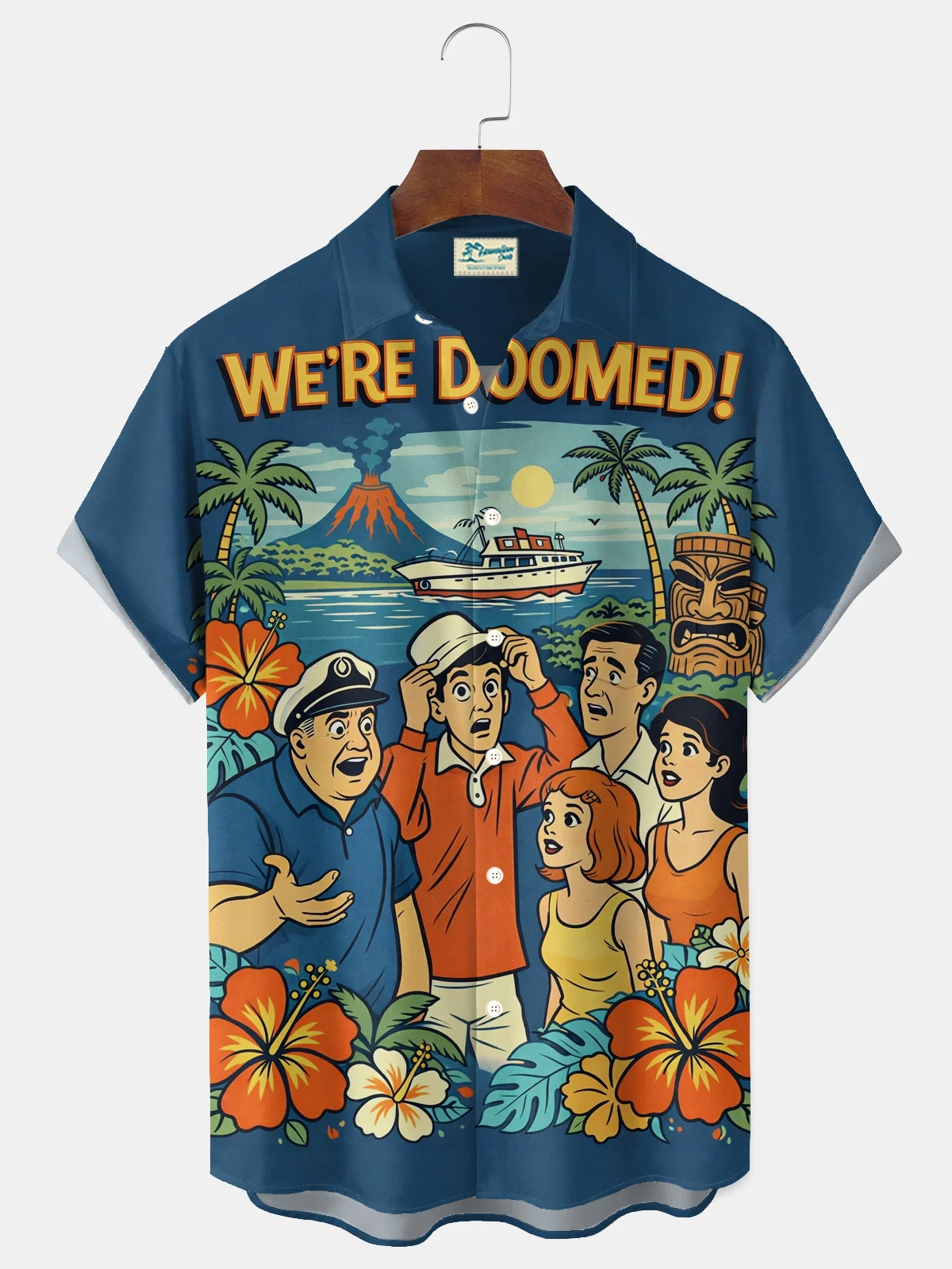 Royaura® Retro Hawaiian Coconut Tree Print Men's Button-Down Short-Sleeve Shirt Big & Tall