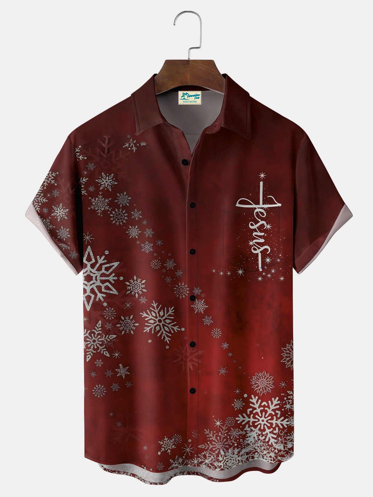 Royaura® Retro Holiday Christmas Faith Flakes Print Men's Button Pocket Short Sleeve Shirt Big & Tall