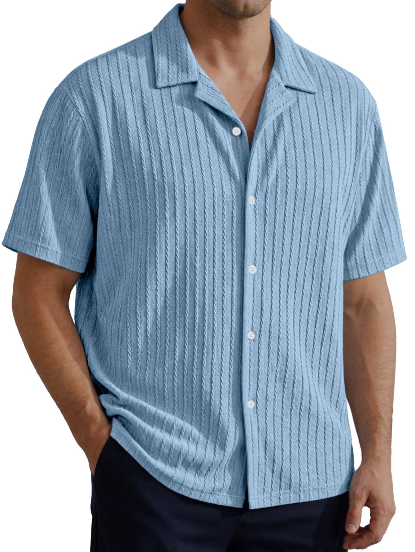 Royaura® Retro Textured Striped Men's Button-Down Short-Sleeve T-Shirt Big & Tall