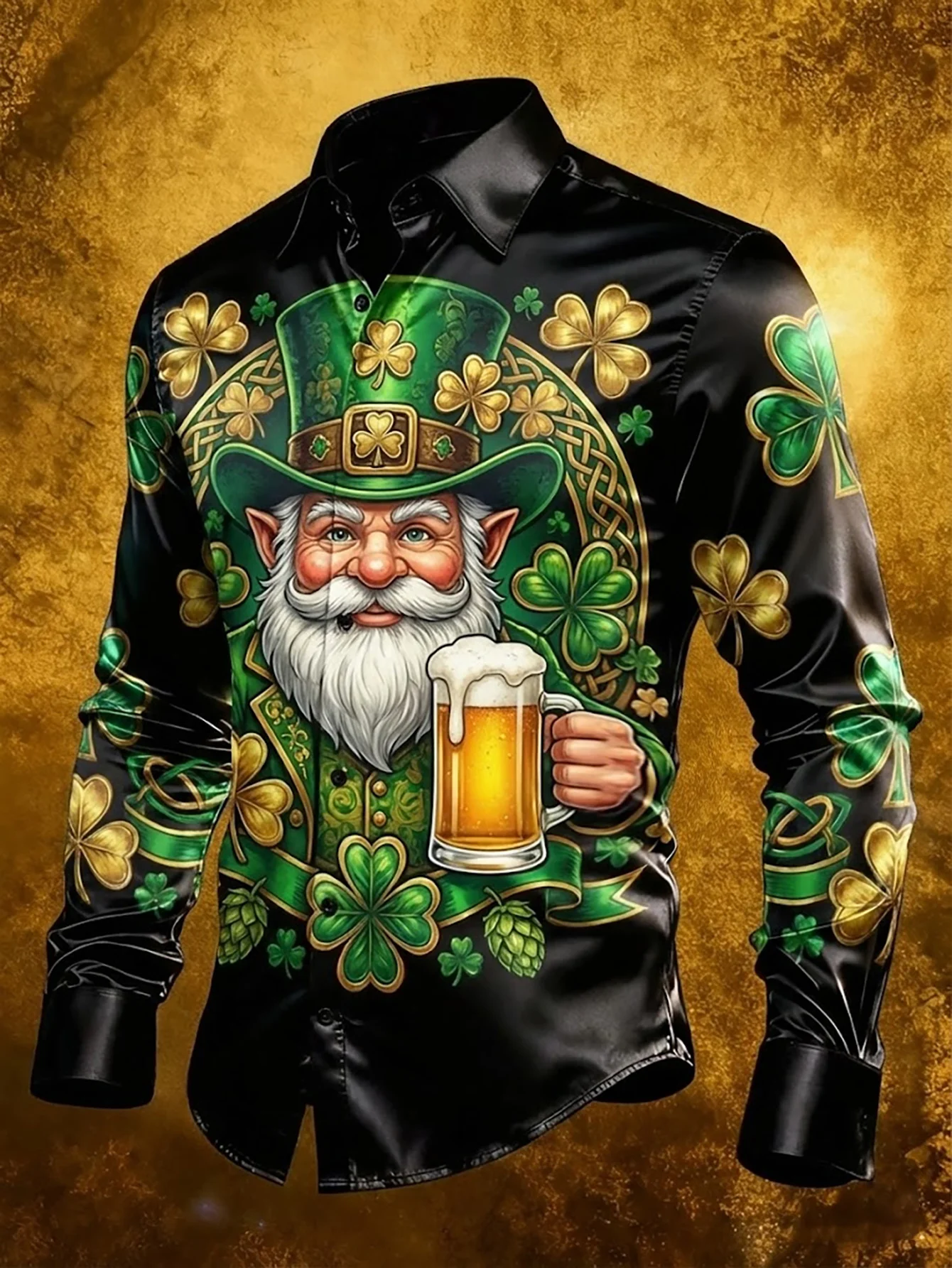Royaura® St. Patrick's Day Beer-Themed Printed Men's Button-Down Holiday Long-Sleeve Shirt Big & Tall