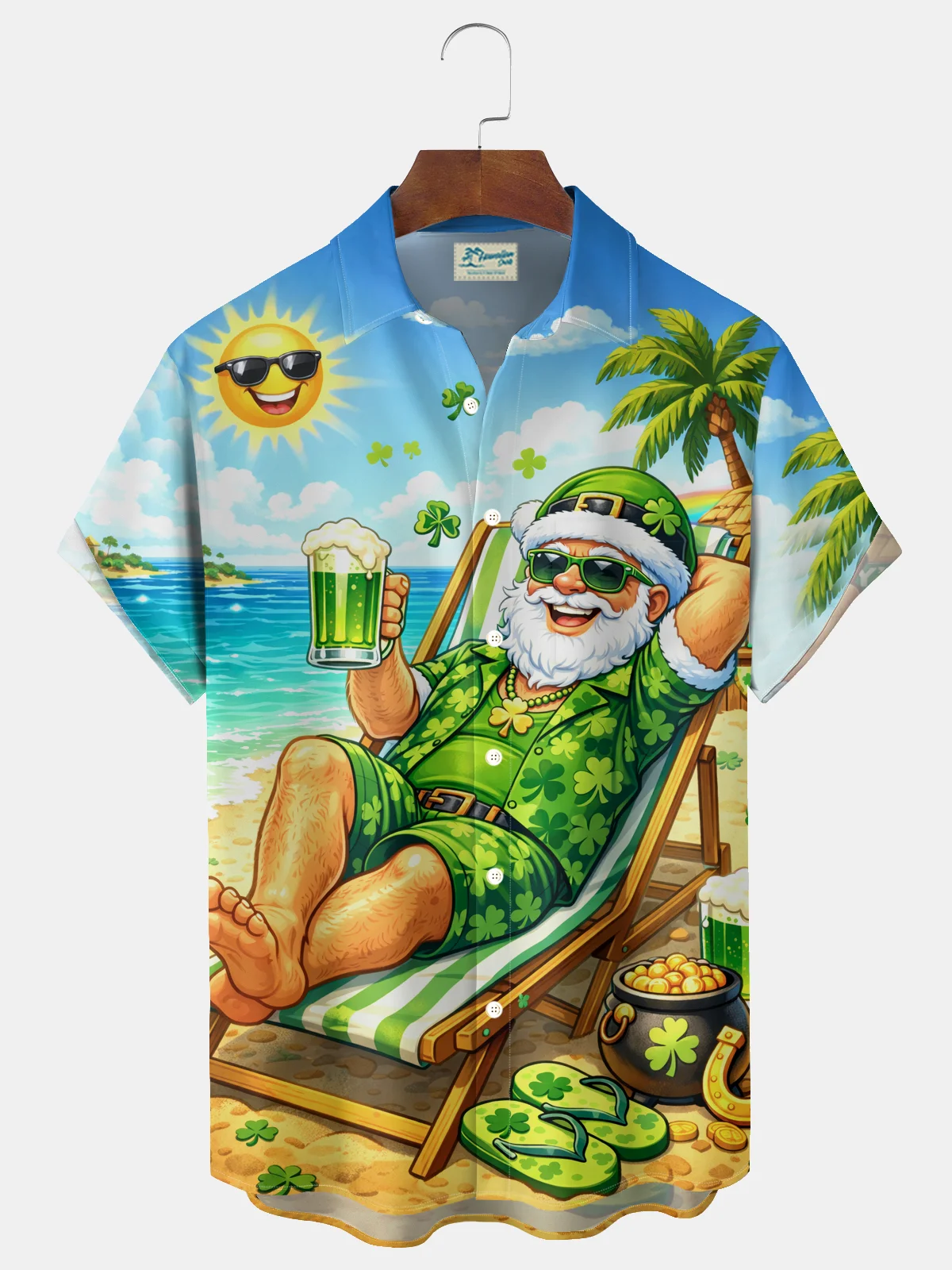 Royaura® St. Patrick's Day Beer Vacation Print Men's Button-Down Pocket Short-Sleeve Shirt Big & Tall