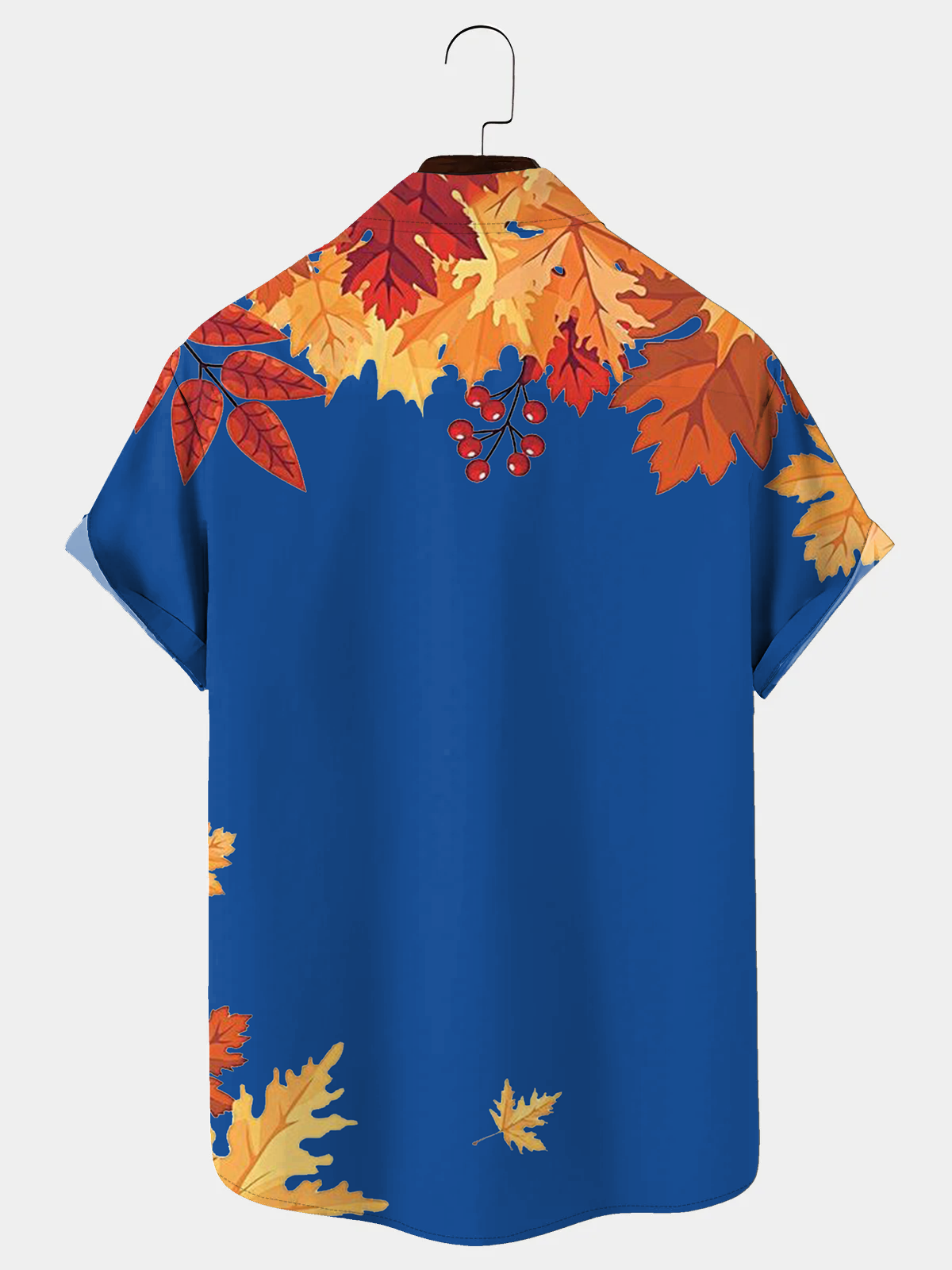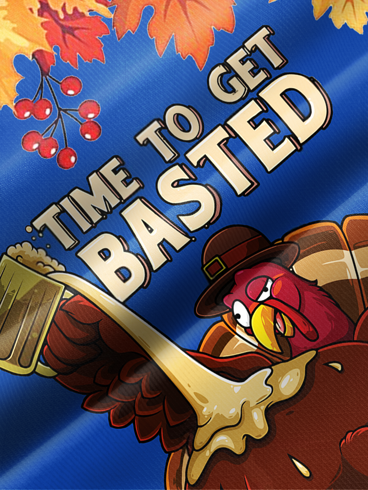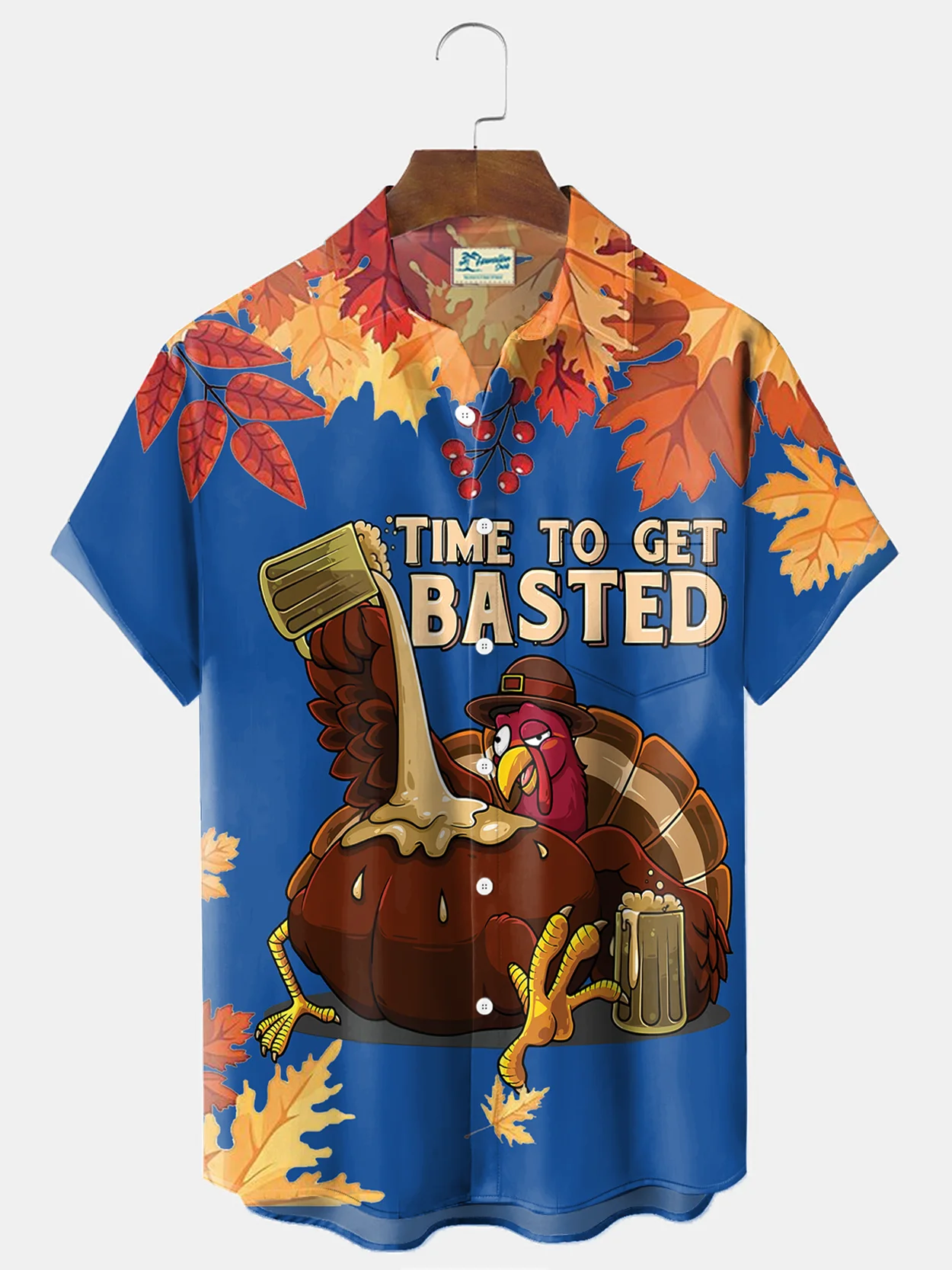 Royaura® Thanksgiving Turkey Print Men's Holiday Chest Pocket Stretch Short Sleeve Shirt Big & Tall