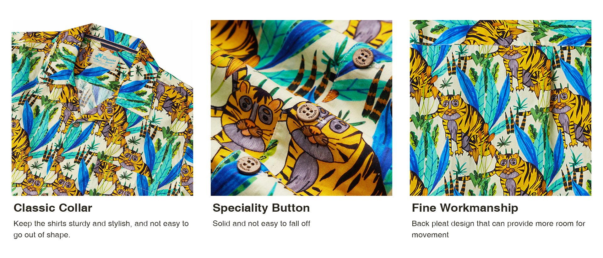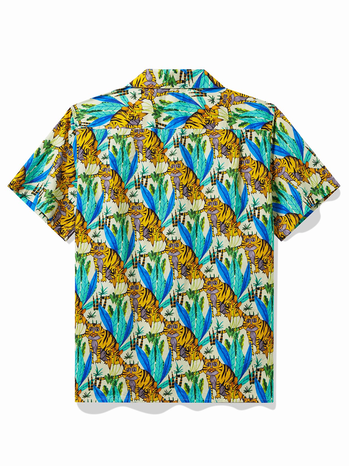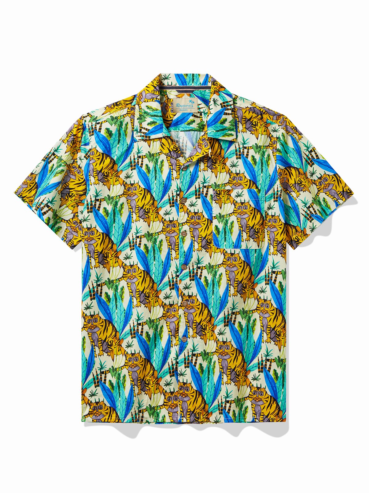 Royaura® Vacation Cotton Men's Hawaiian Shirt Tropical Tiger Pocket Comfortable Breathable Camping Shirt Big Tall