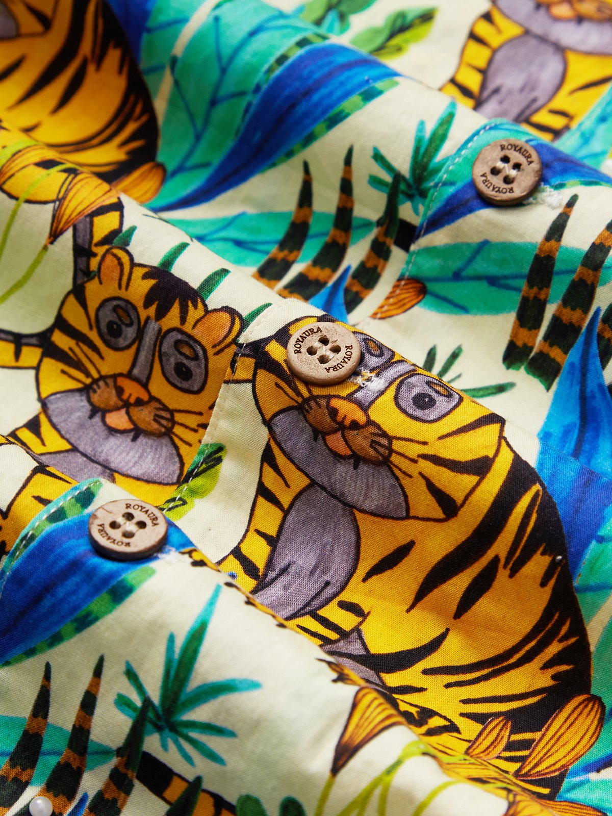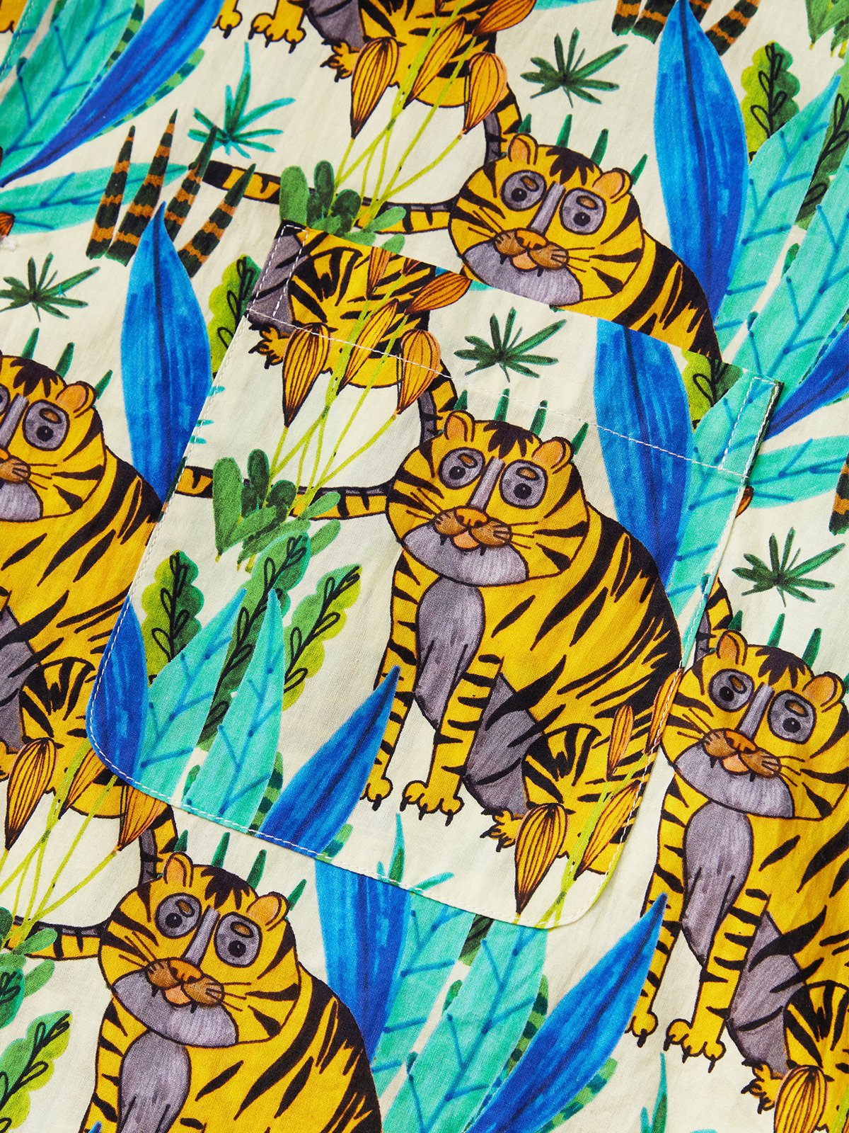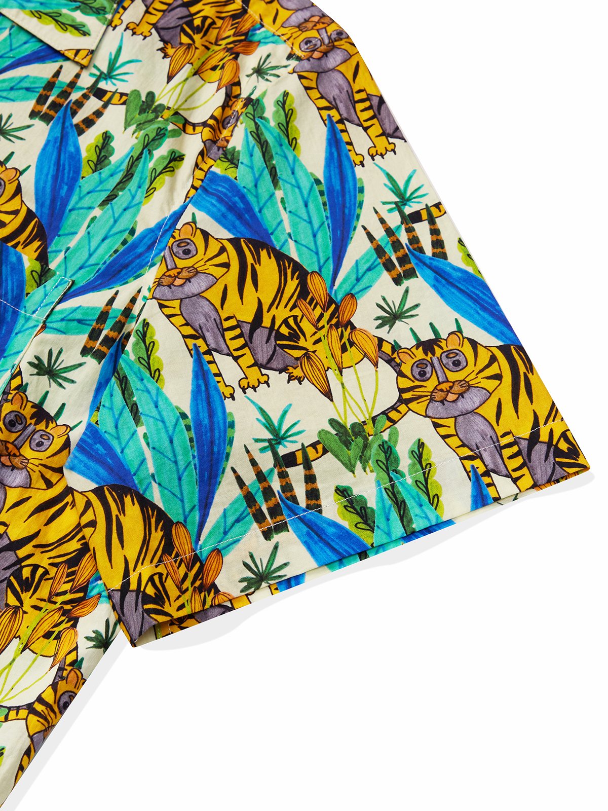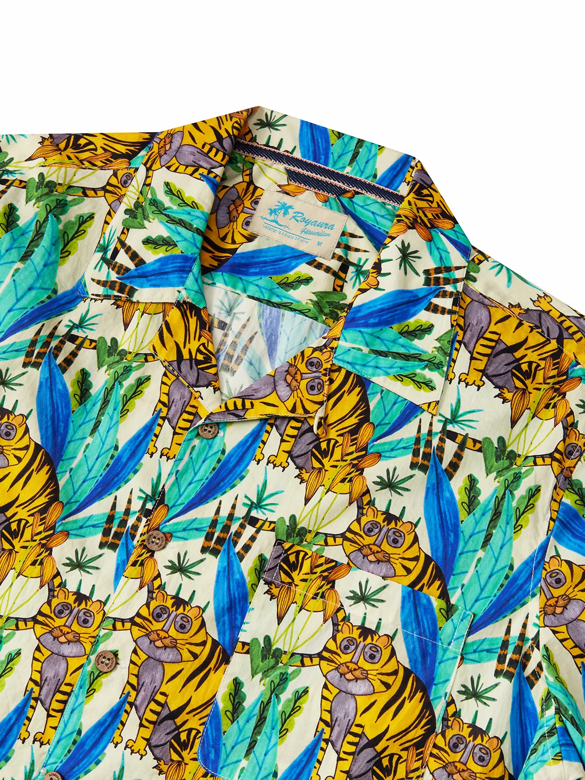 Royaura® Vacation Cotton Men's Hawaiian Shirt Tropical Tiger Pocket Comfortable Breathable Camping Shirt Big Tall