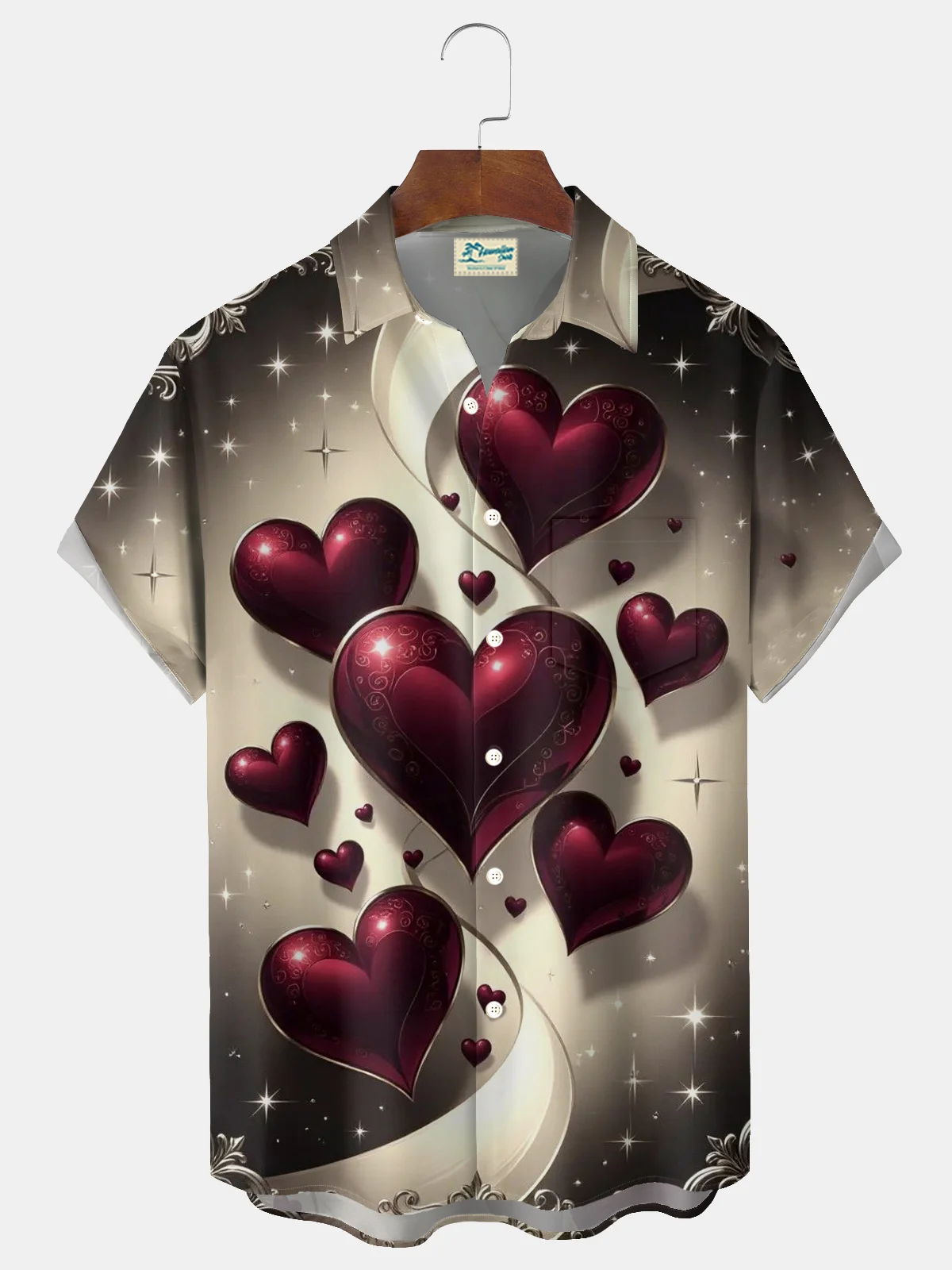 Royaura® Valentine's Day Heart-Patterned Floral Print Men's Button-Down Short-Sleeve Hawaiian Shirt Big & Tall