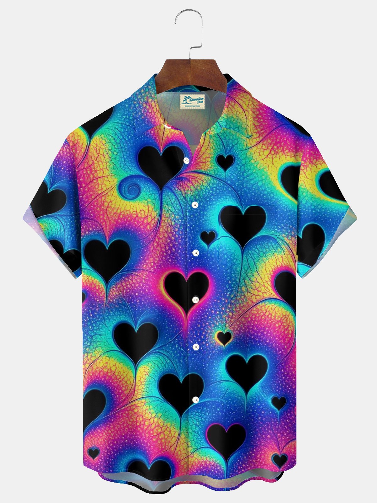 Royaura® Valentine's Day Heart-Patterned Floral Print Men's Button-Down Short-Sleeve Hawaiian Shirt Big & Tall