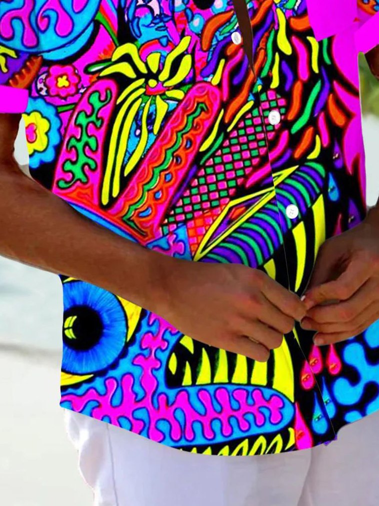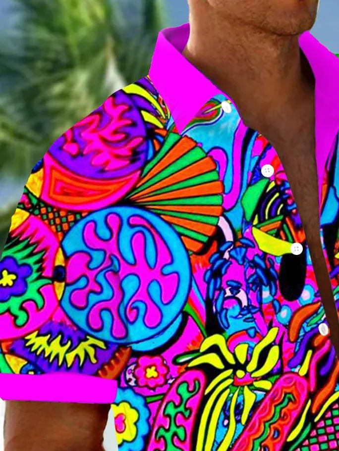 Royaura® Vintage Abstract Art Texture Print Chest Pocket Shirt Plus Size Men's Shirt Big Tall